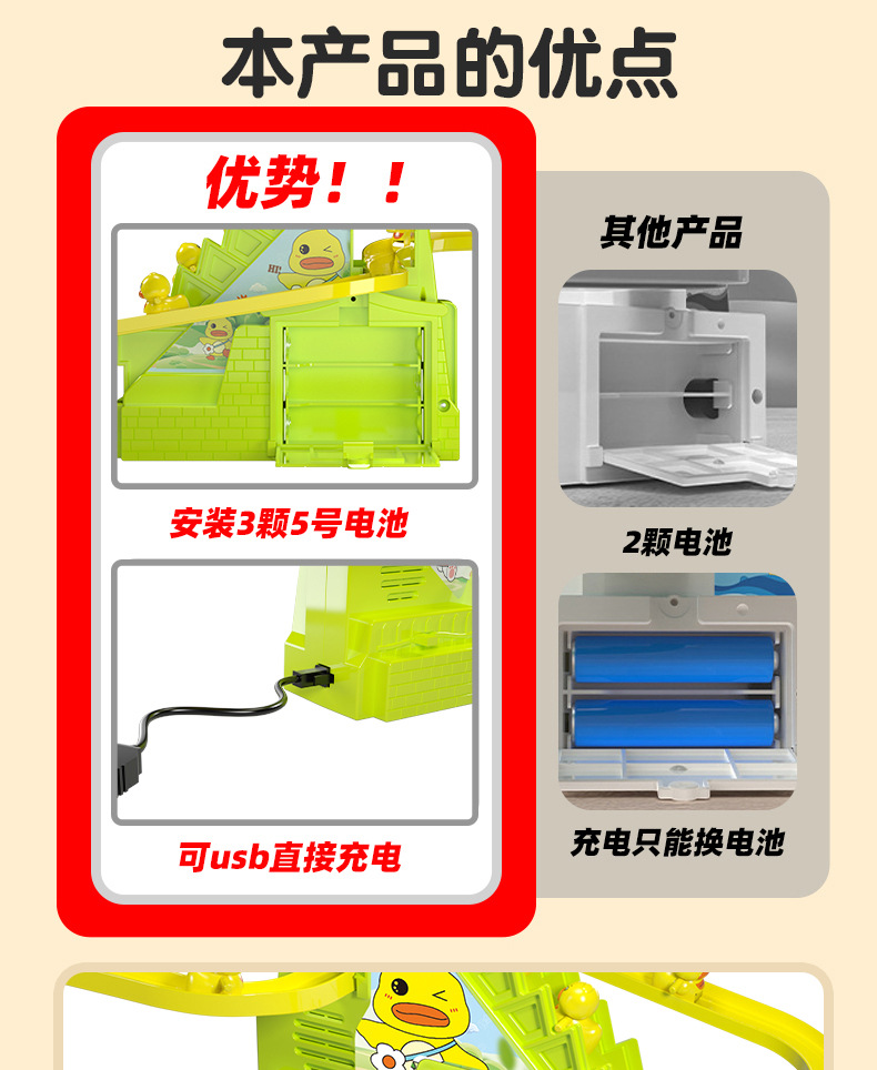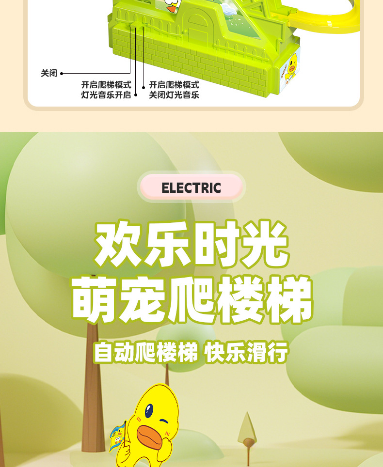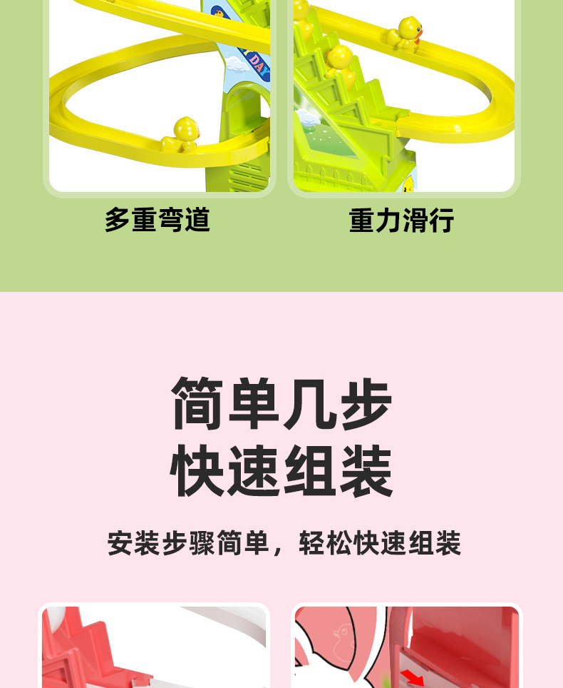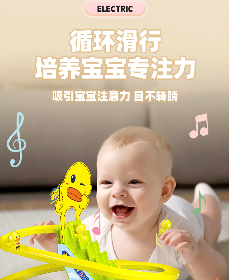 어린이 교육 전기 계단 등반 작은 노란 오리 귀여운 재미 작은 토끼 슬라이드 트랙 조립 음악 장난감 선물스토어 가기