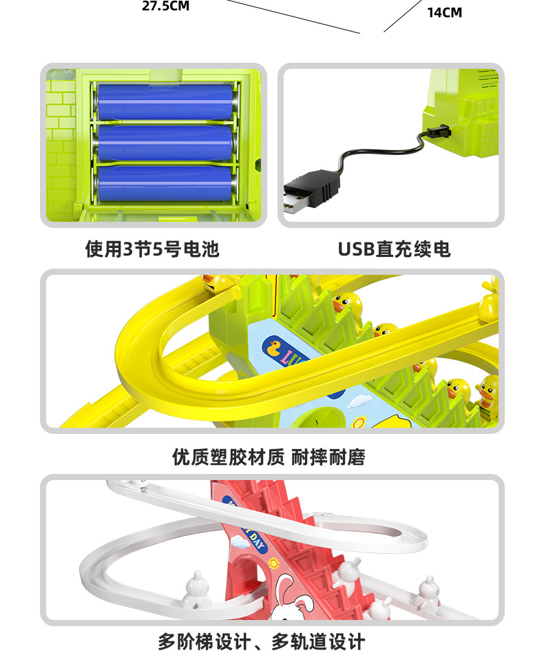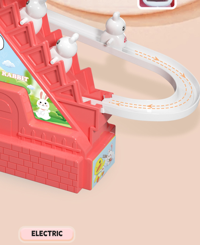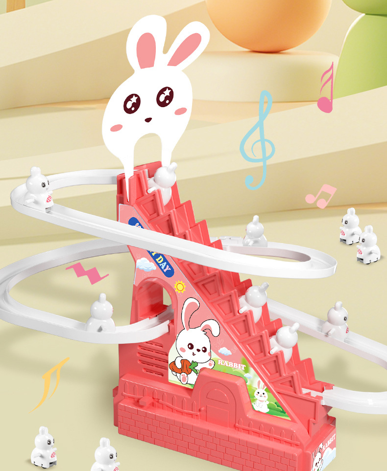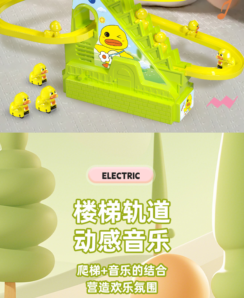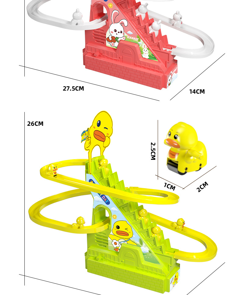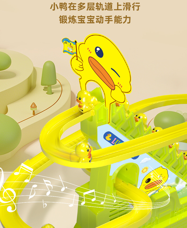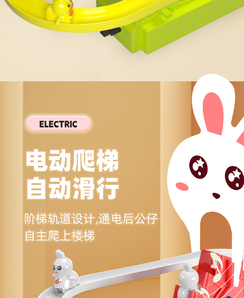 어린이 교육 전기 계단 등반 작은 노란 오리 귀여운 재미 작은 토끼 슬라이드 트랙 조립 음악 장난감 선물
