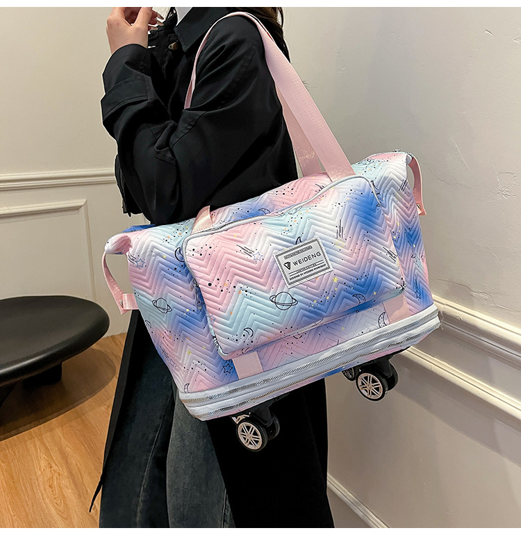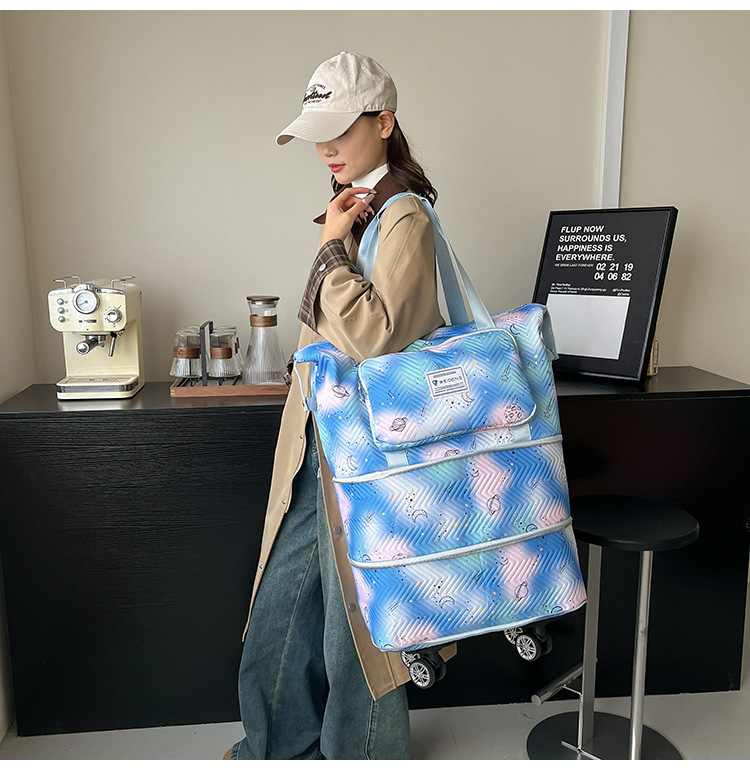 대외 무역 새로운 유니버설 휠 확장 가능한 토트 백 여성 인쇄 인기 대용량 저장 가방