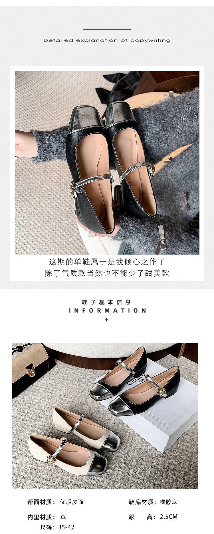 메리 제인 작은 가죽 신발 여성의 2025 새로운 봄과 가을 요정 스타일 원피스 저녁 스타일 부드러운 신발 프렌치 로우 힐 싱글 레이어 신발스토어 가기