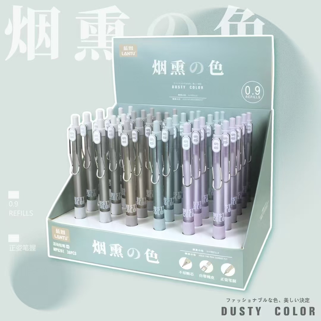 자동 연필 0.9 액티비티 펜 hb 연필 부드러운 그립 스모키 컬러 연속 코어 남성과 여학생스토어 가기