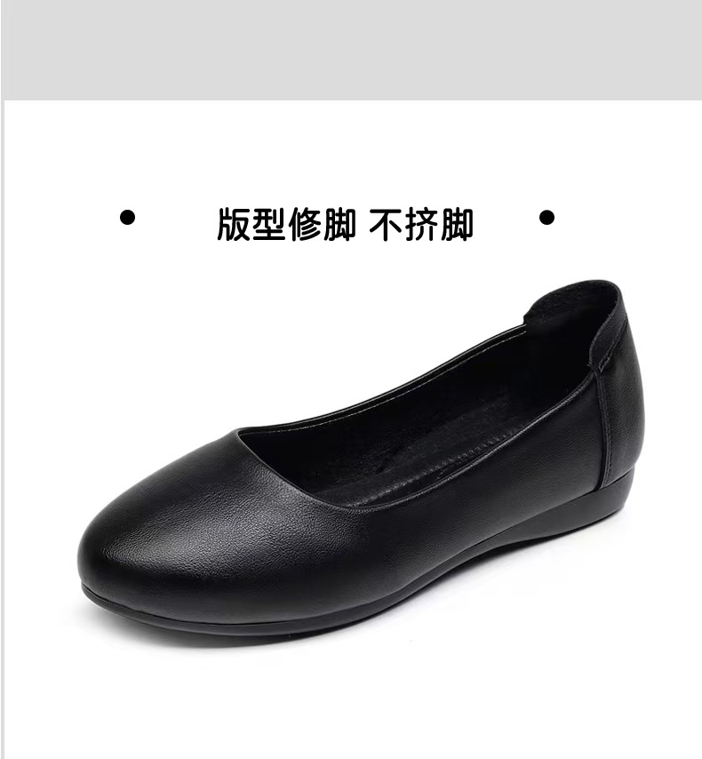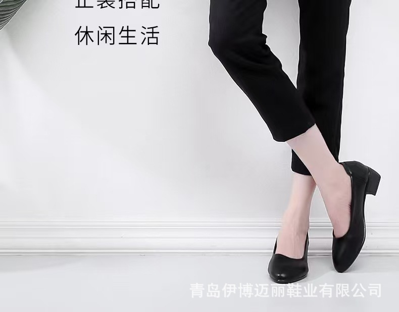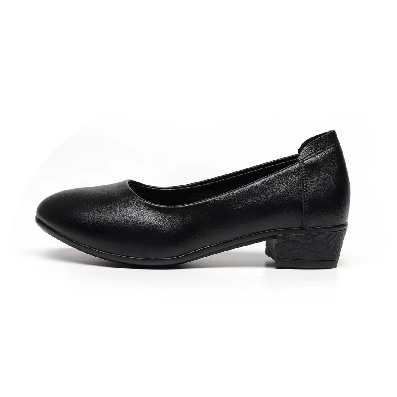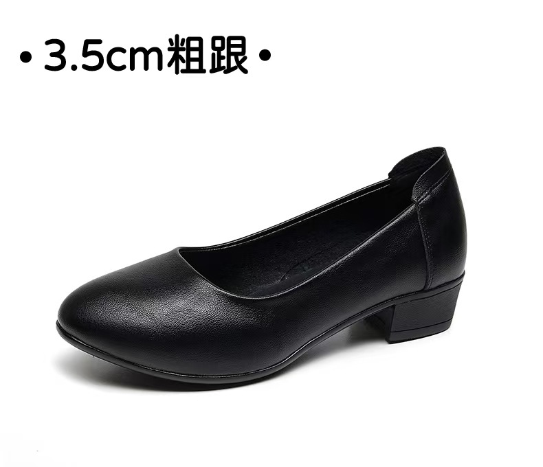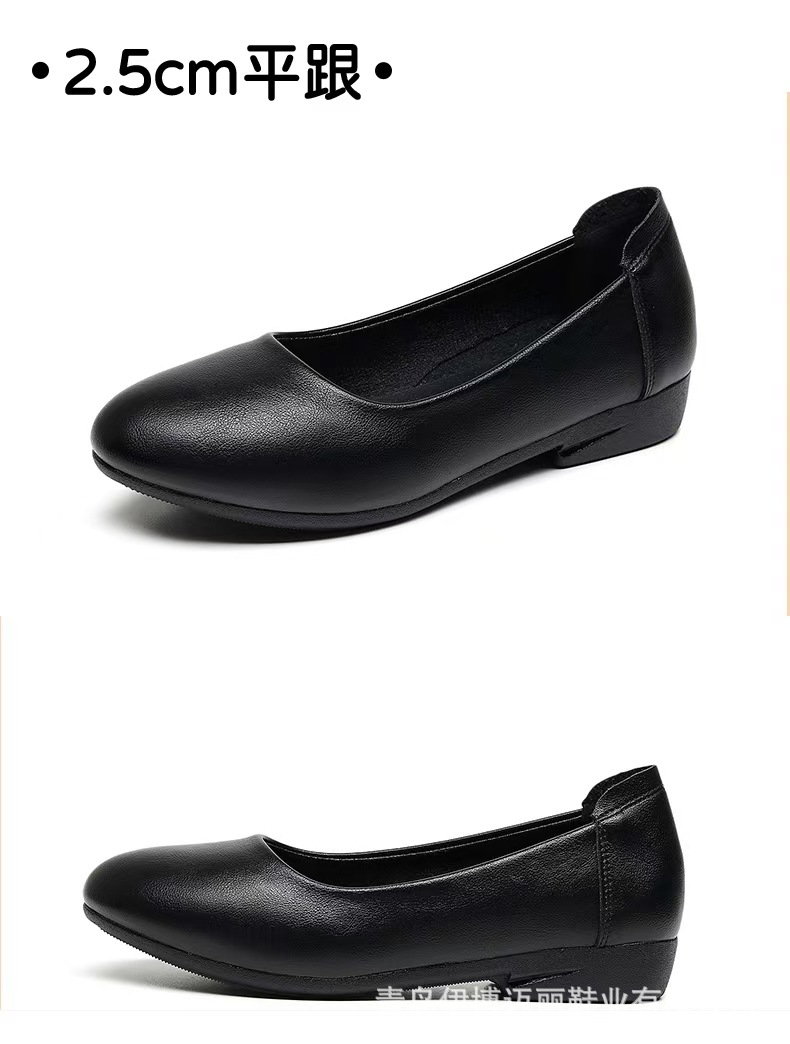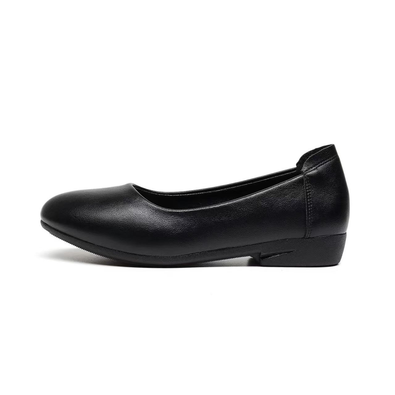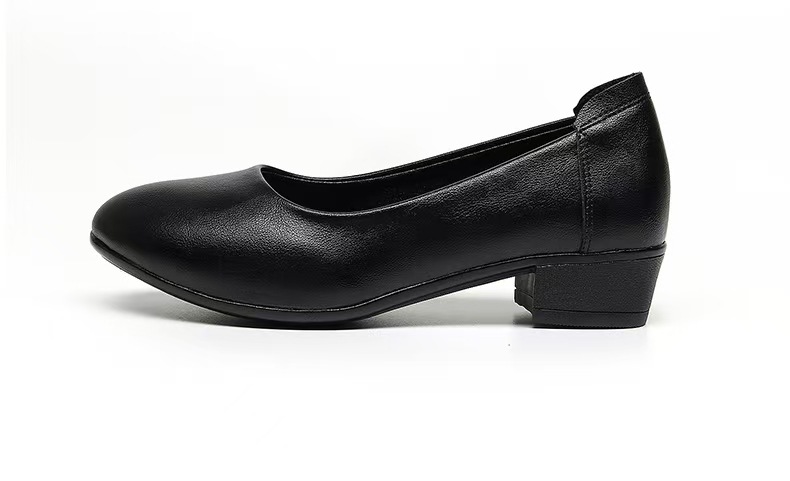 소스 공장 소프트 단독 미끄럼 방지 작업 신발 여성 블랙 가죽 전문 두꺼운 신발 에티켓 오래 서 피곤하지 않은 가죽 신발스토어 가기