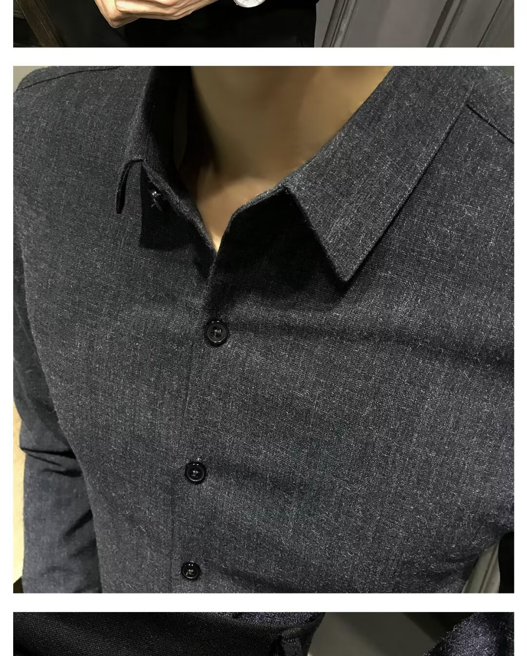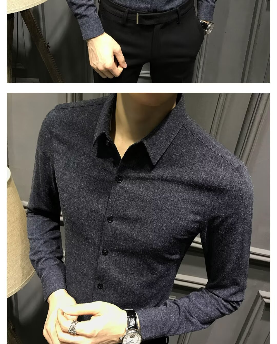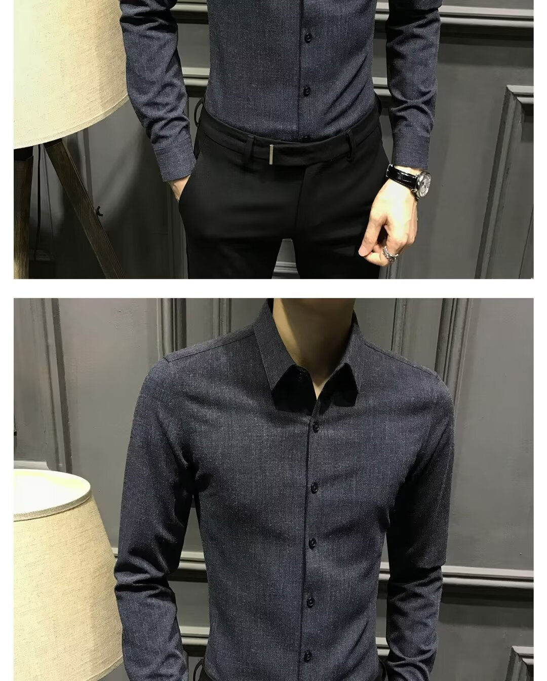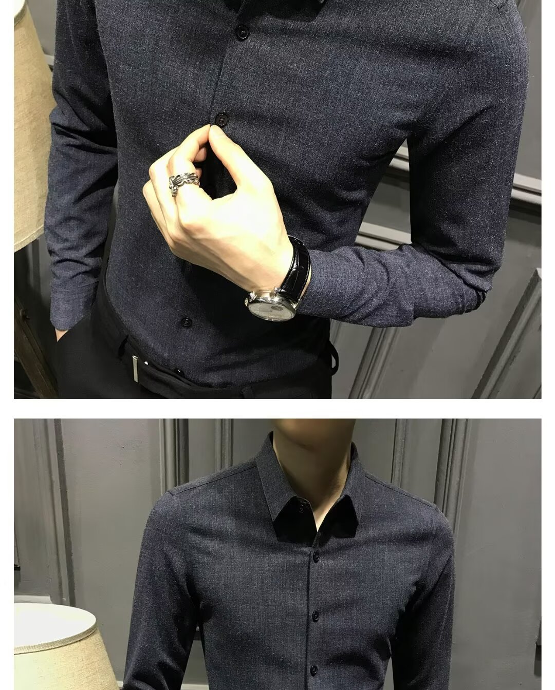 블랙 그레이 샌딩 셔츠 남성용 긴팔 한국식 슬림 핏 캐주얼 세트 셔츠 비즈니스 하이 엔드 내베이스 셔츠스토어 가기