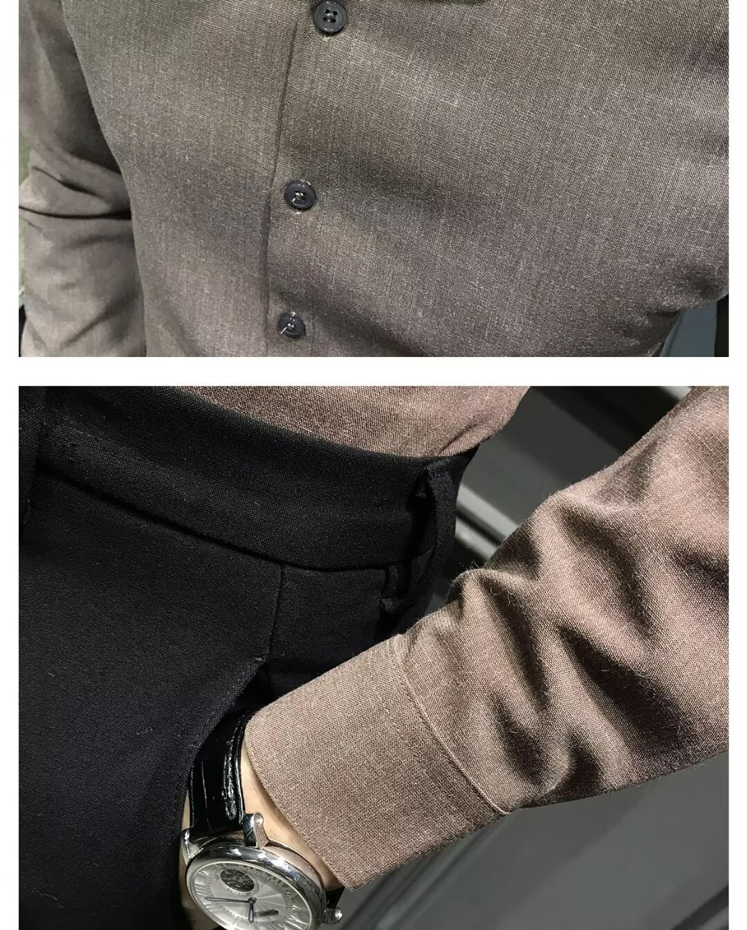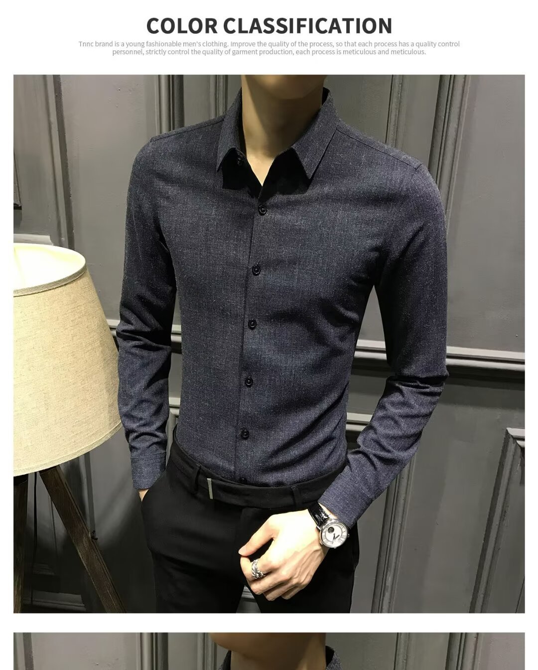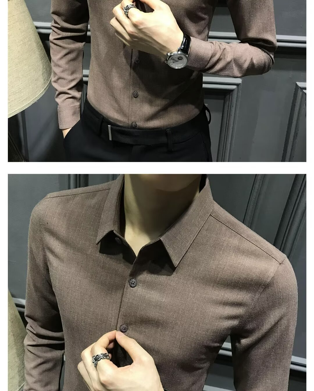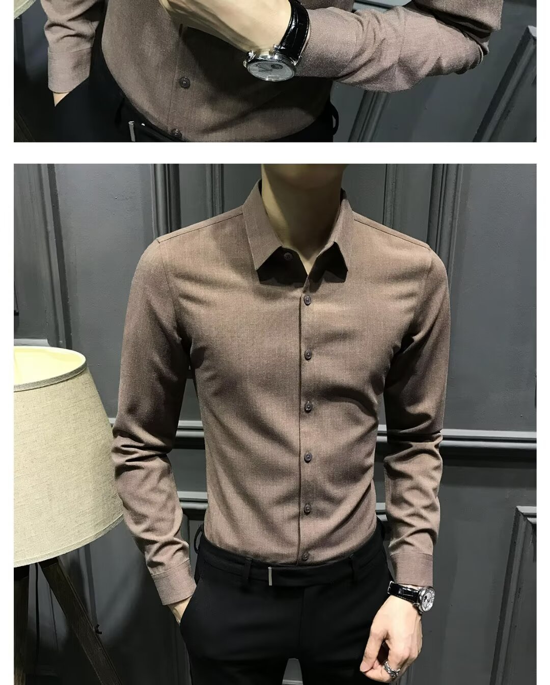 블랙 그레이 샌딩 셔츠 남성용 긴팔 한국식 슬림 핏 캐주얼 세트 셔츠 비즈니스 하이 엔드 내베이스 셔츠스토어 가기