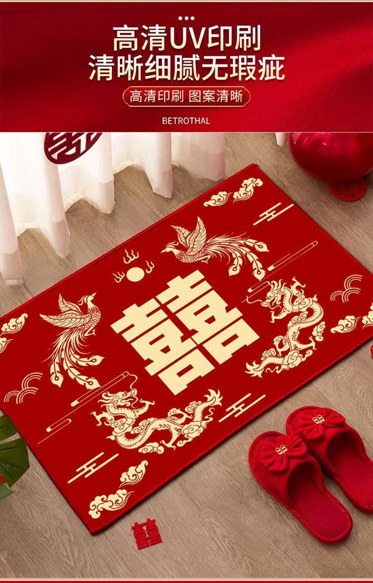 웨딩 해피 캐릭터 플로어 매트 축제 입구 문 침실 흡수성 슬라이딩 풋 매트 웨딩 룸 레이아웃 카펫 도어 매트 공장