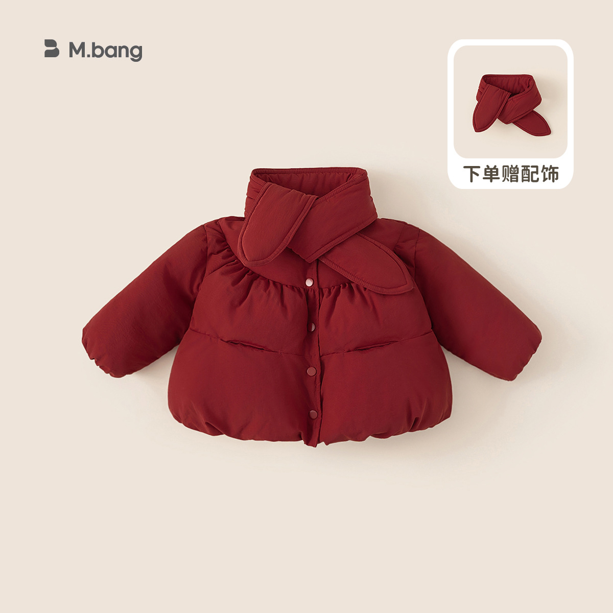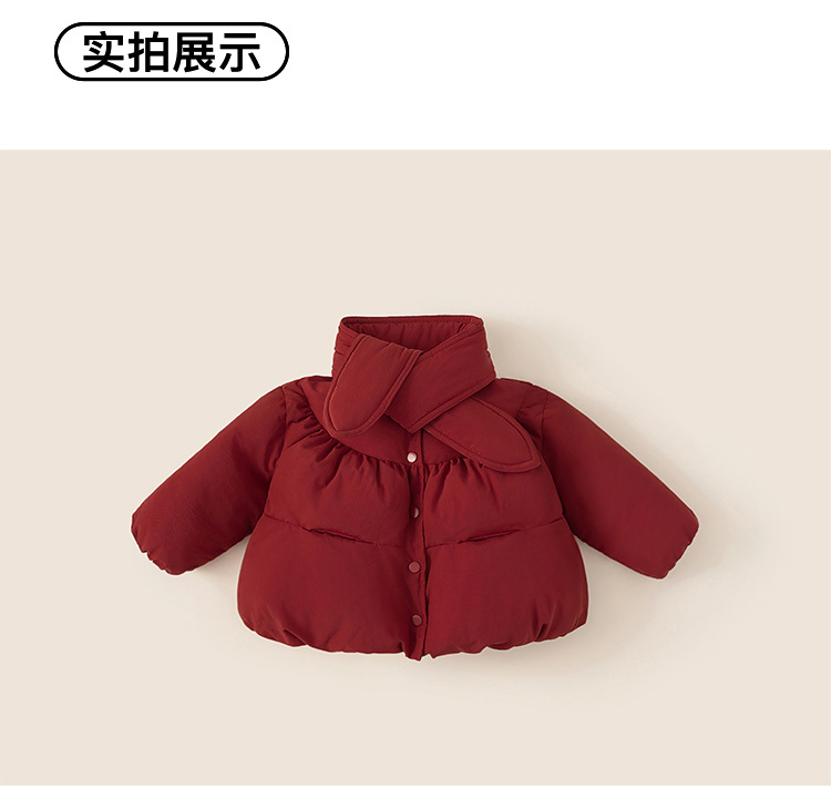 봉 선정한 아동복 겨울새 스카프 코트 걸스 붉은짧은면 옷 따뜻한 두껍게 한 아동복 신년면 코트