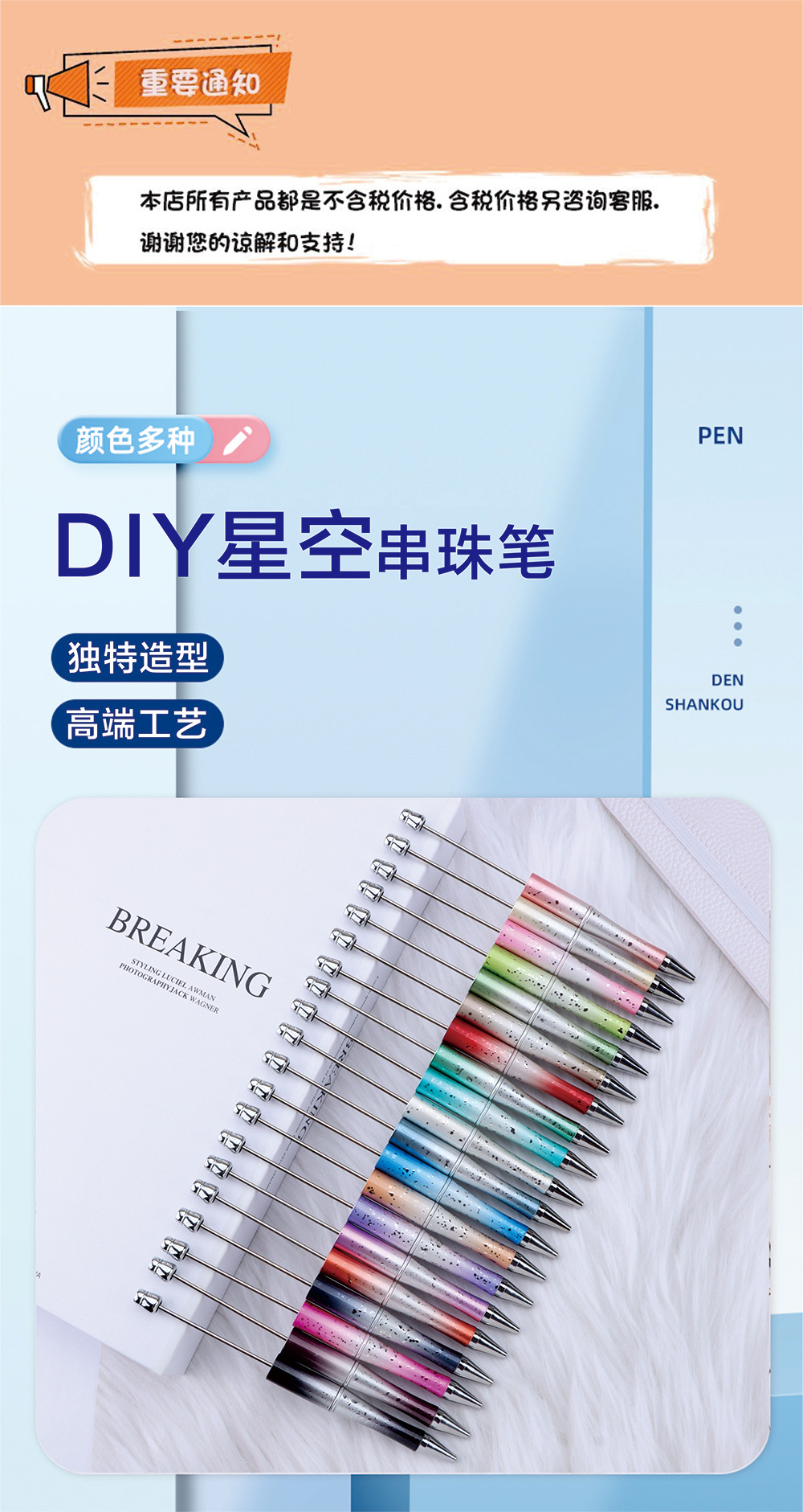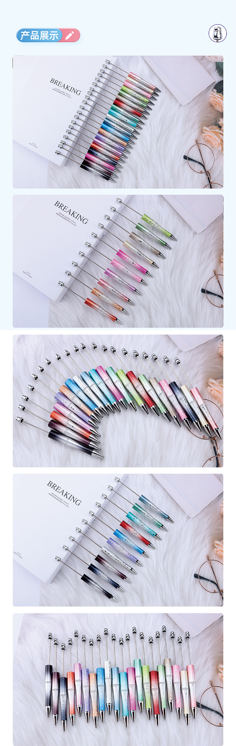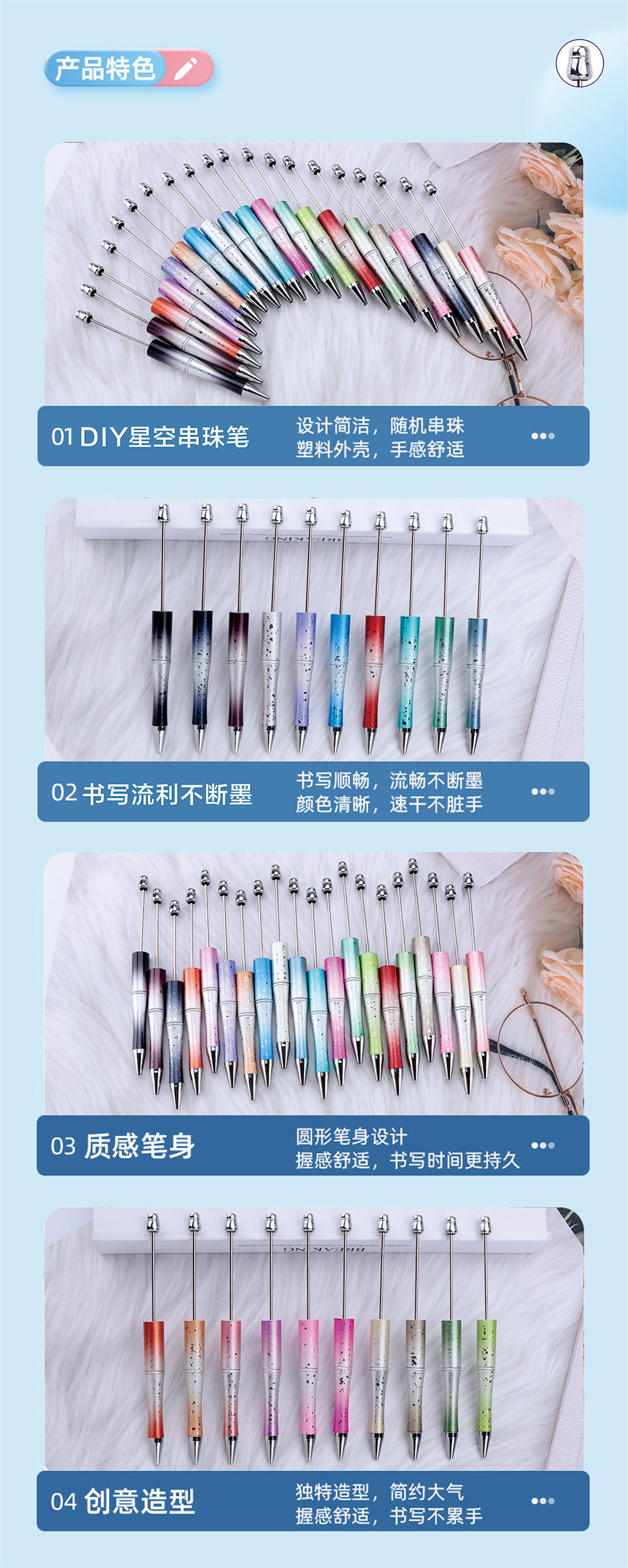 크로스 보더 diy 별이 빛나는 하늘 도금 구슬 펜 스타 점선 멀티 컬러 그라디언트 구슬 귀여운 펜 블라인드 박스 선물 펜스토어 가기