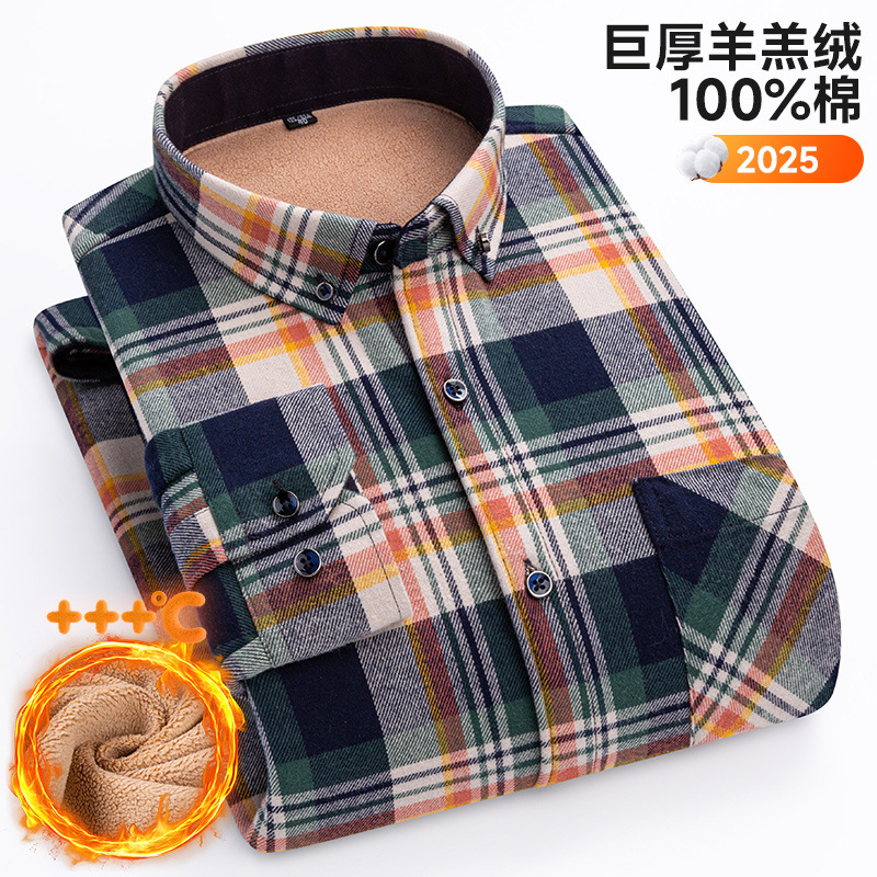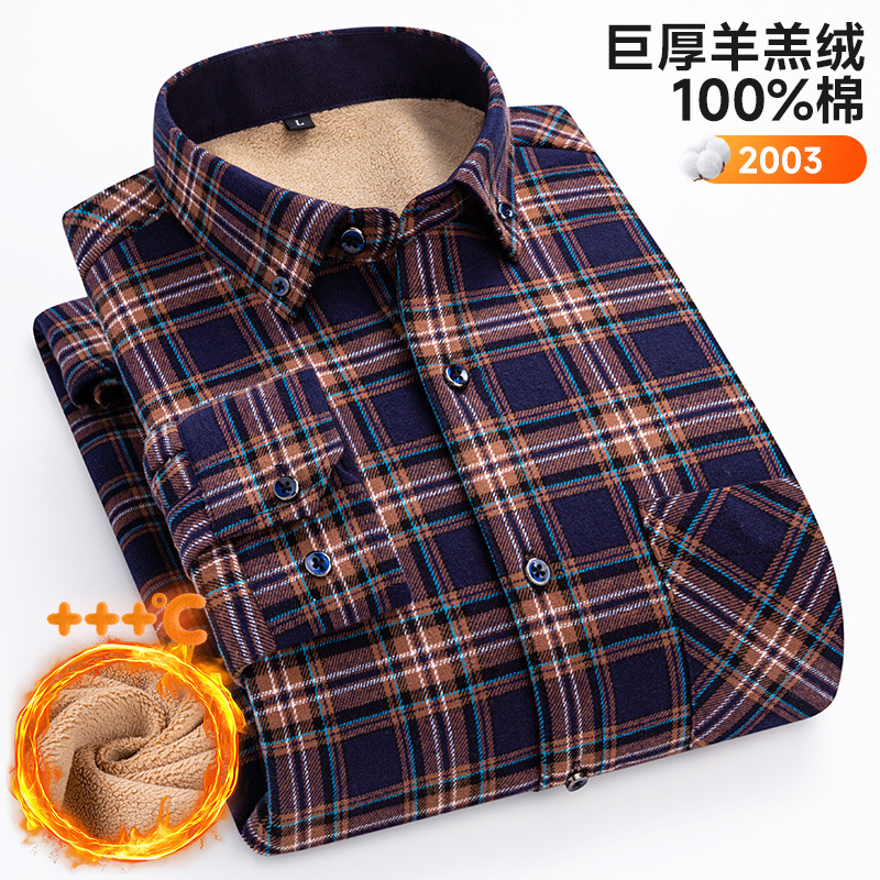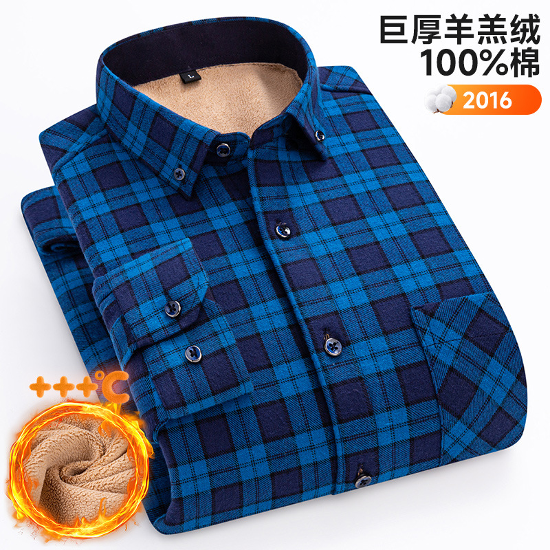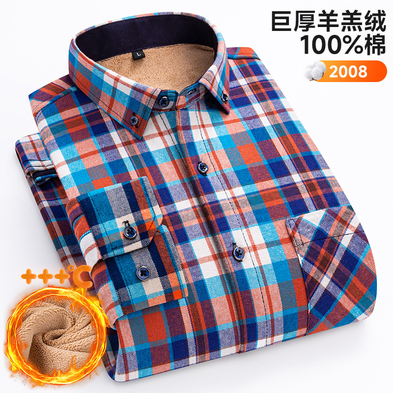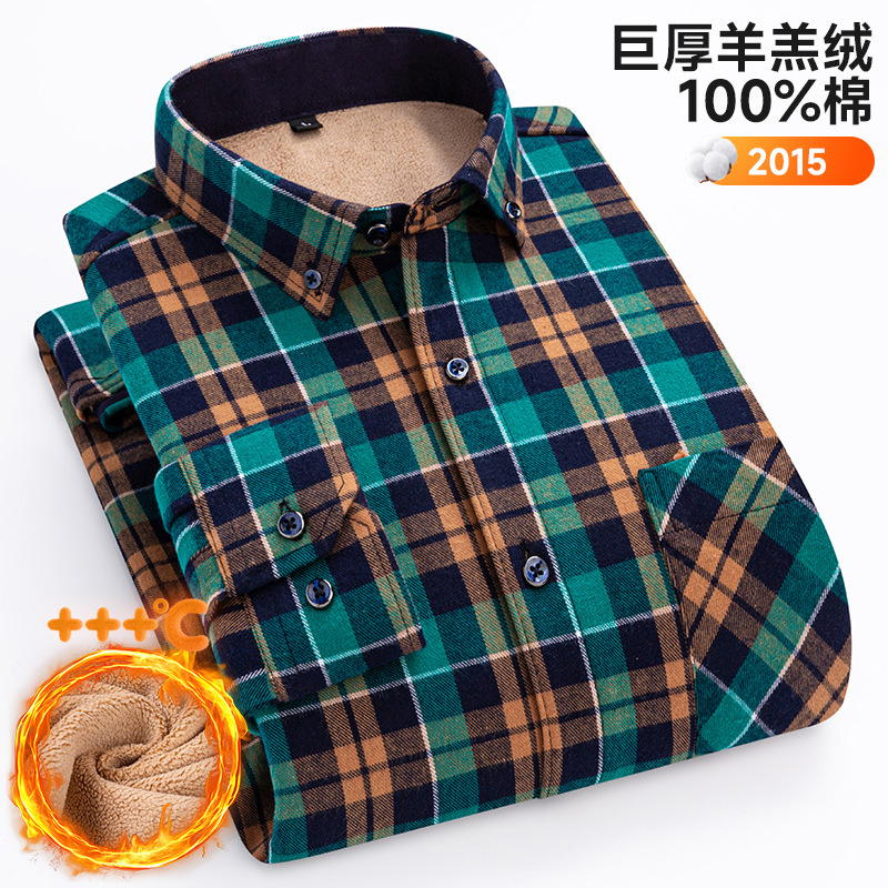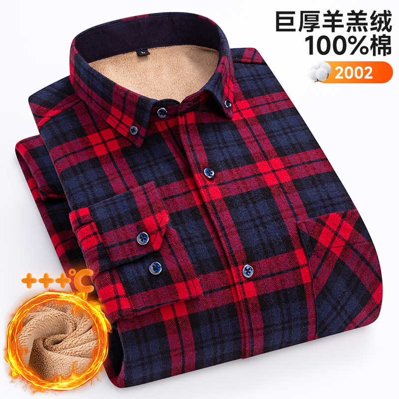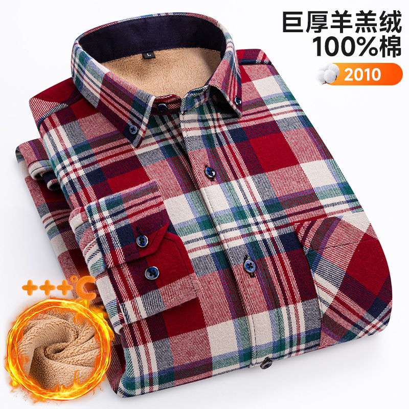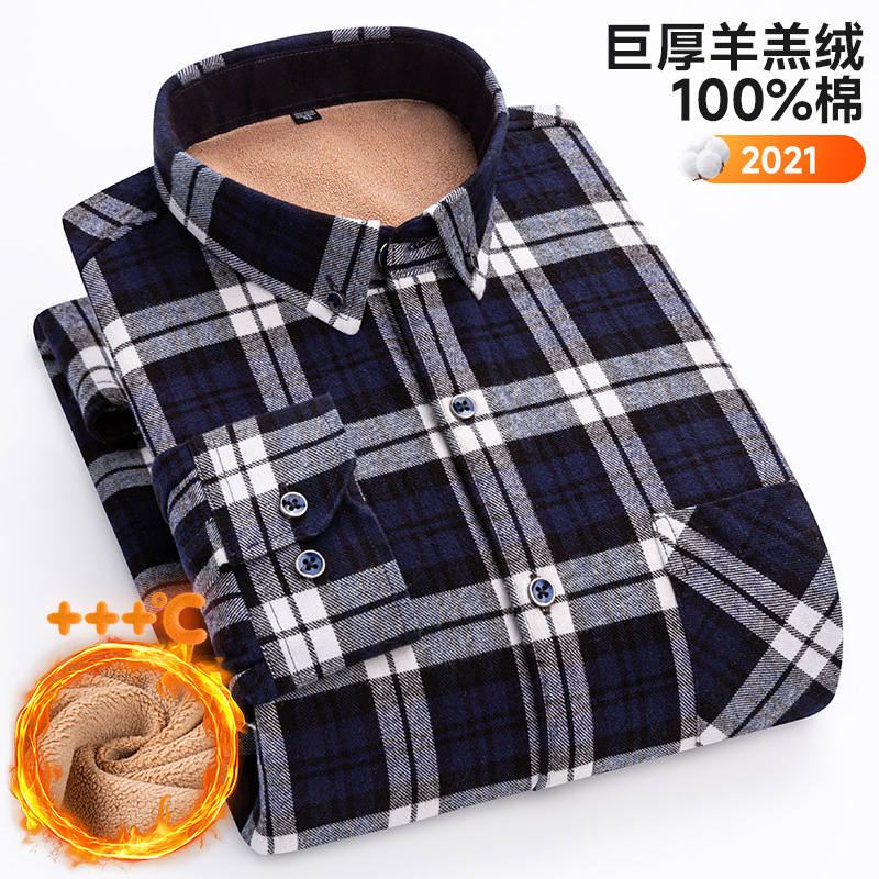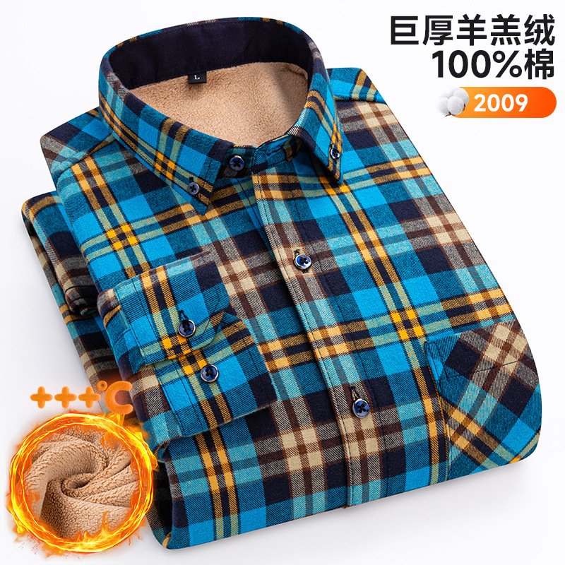 가을 겨울 순면 양털 체크무늬 보온 셔츠 남성용 두꺼운 플리스 크로스보더 대형 사이즈 남성용 플리스 셔츠