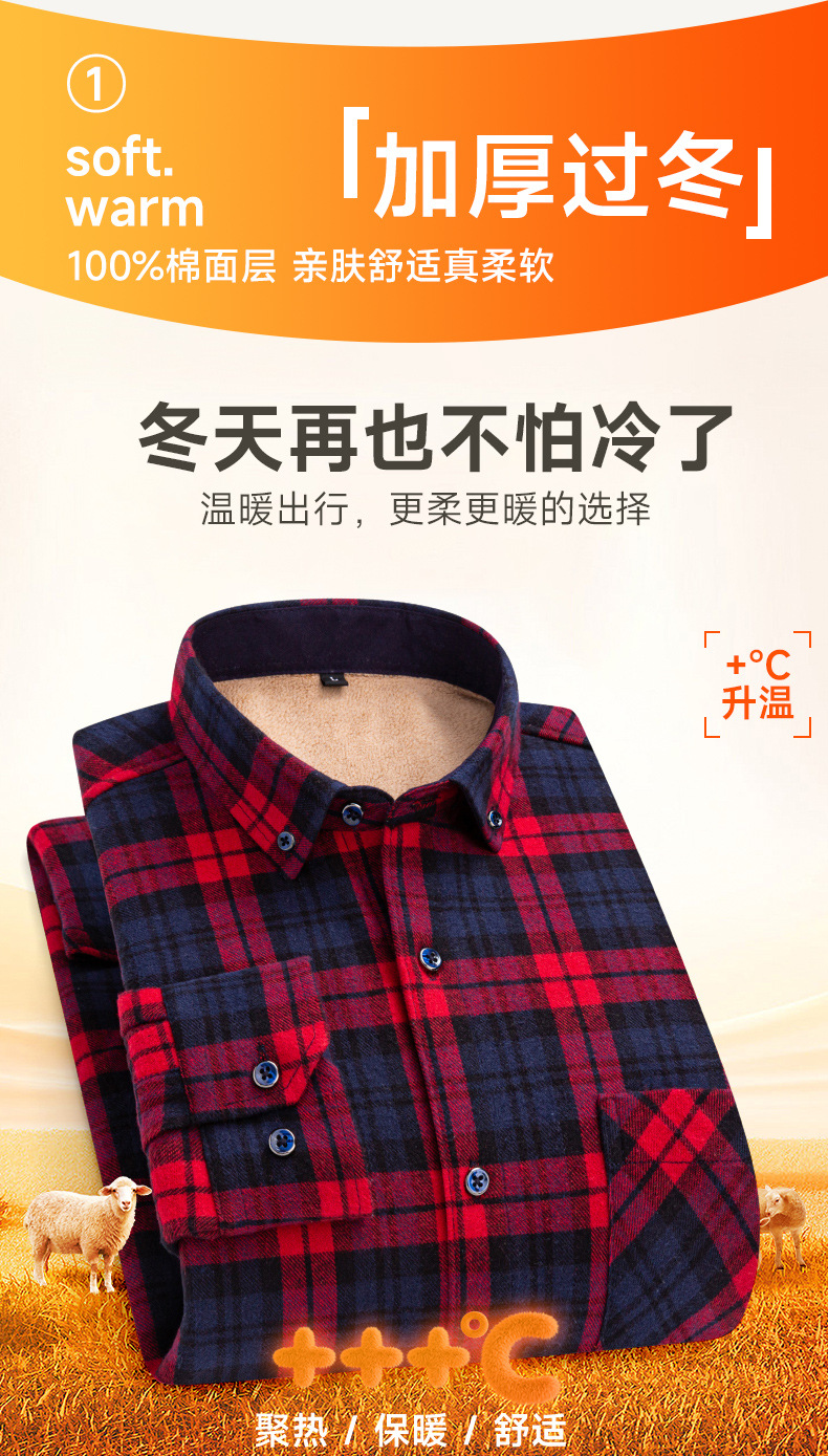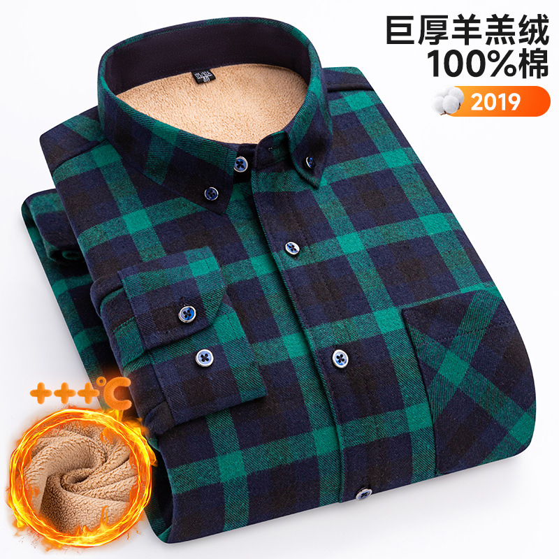 가을 겨울 순면 양털 체크무늬 보온 셔츠 남성용 두꺼운 플리스 크로스보더 대형 사이즈 남성용 플리스 셔츠스토어 가기