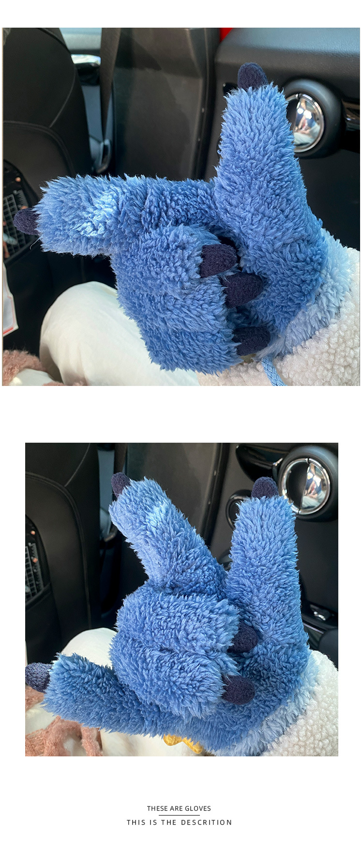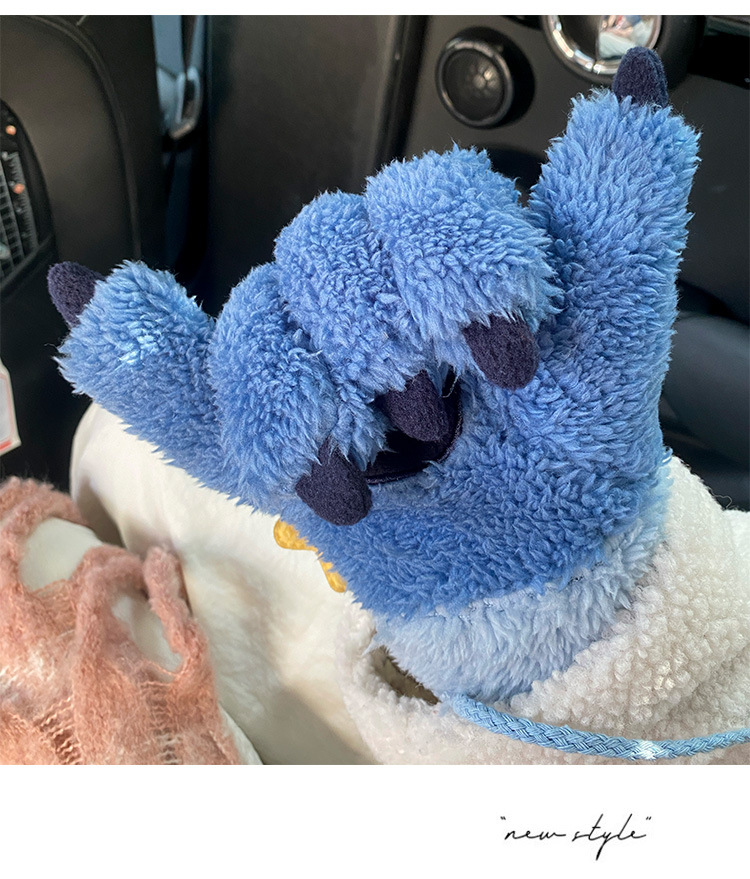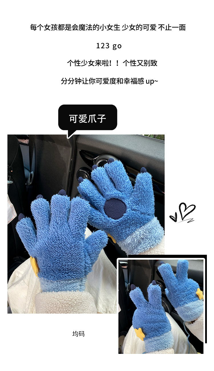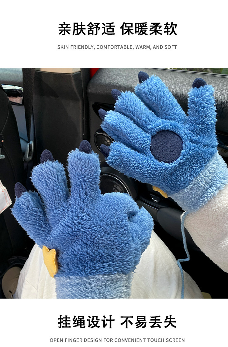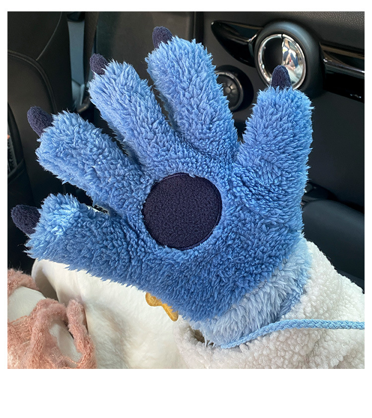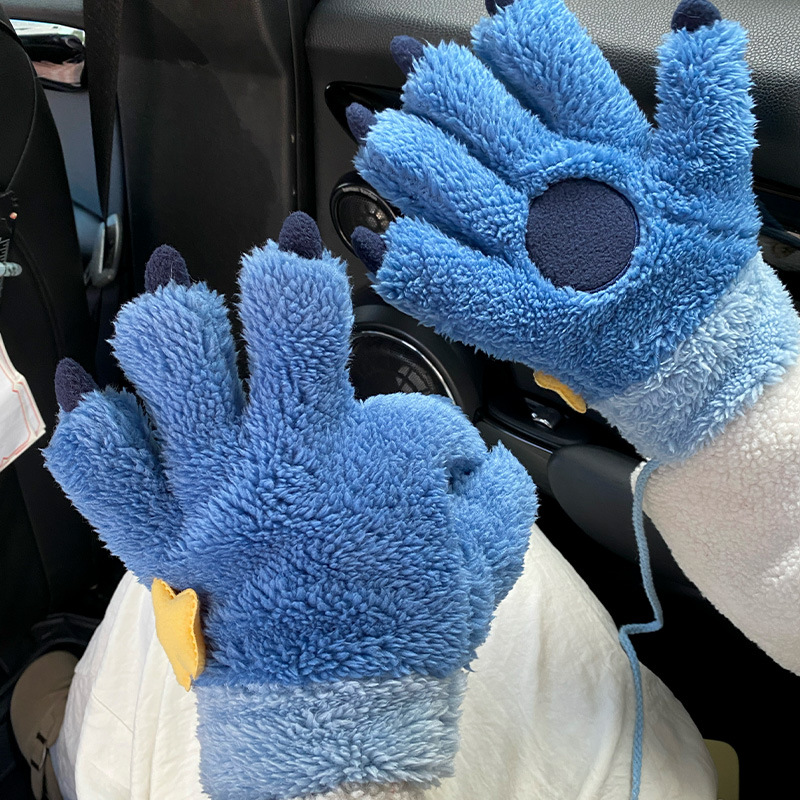 귀여운 스티치 비스트 클로 다섯 손가락 봉제 장갑 여성의 겨울 2024 새로운 두껍게 한 냉온 보온 학생 승마스토어 가기