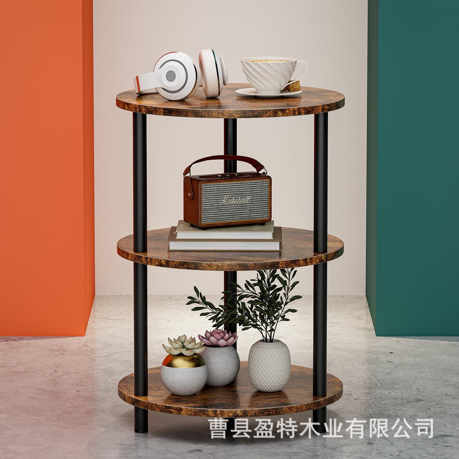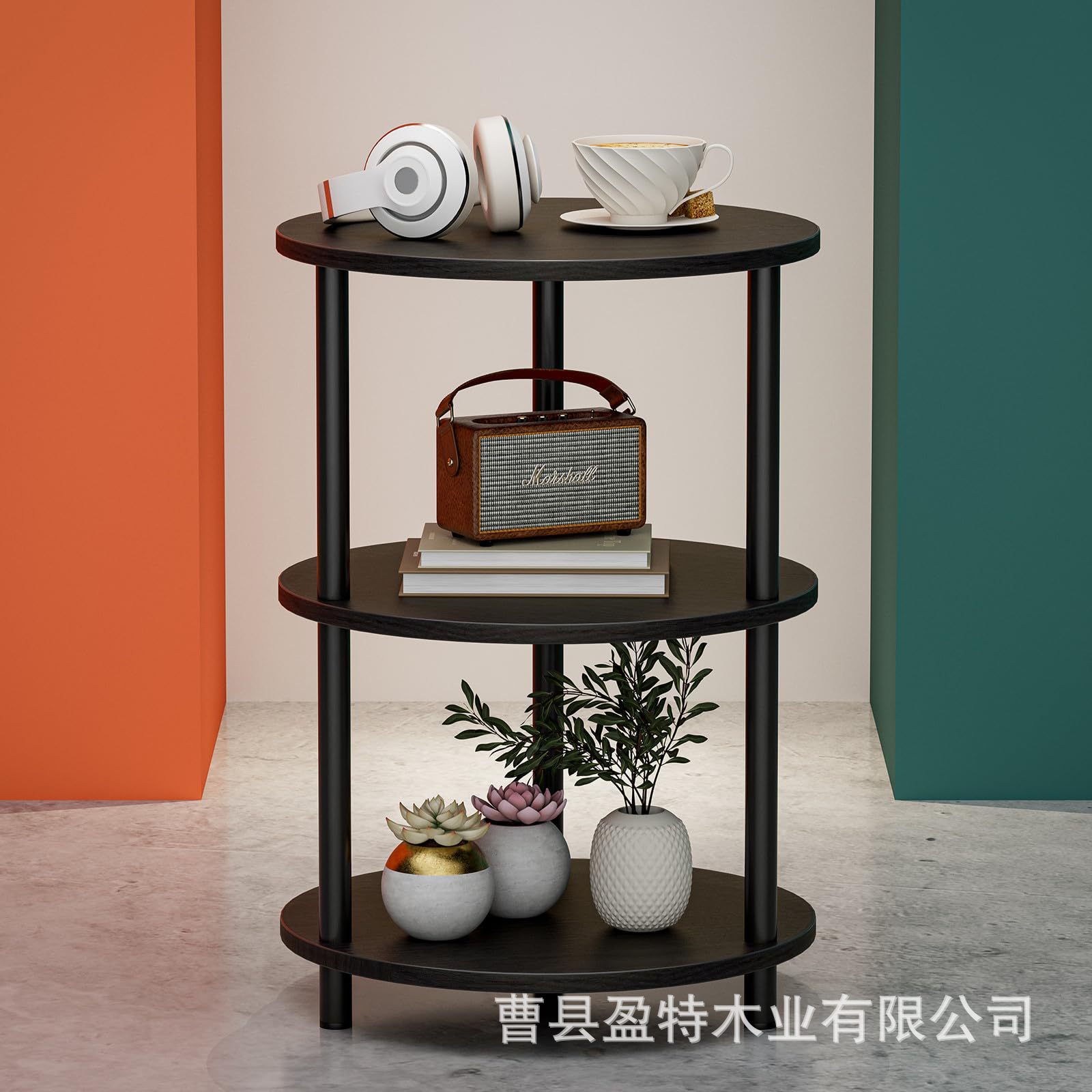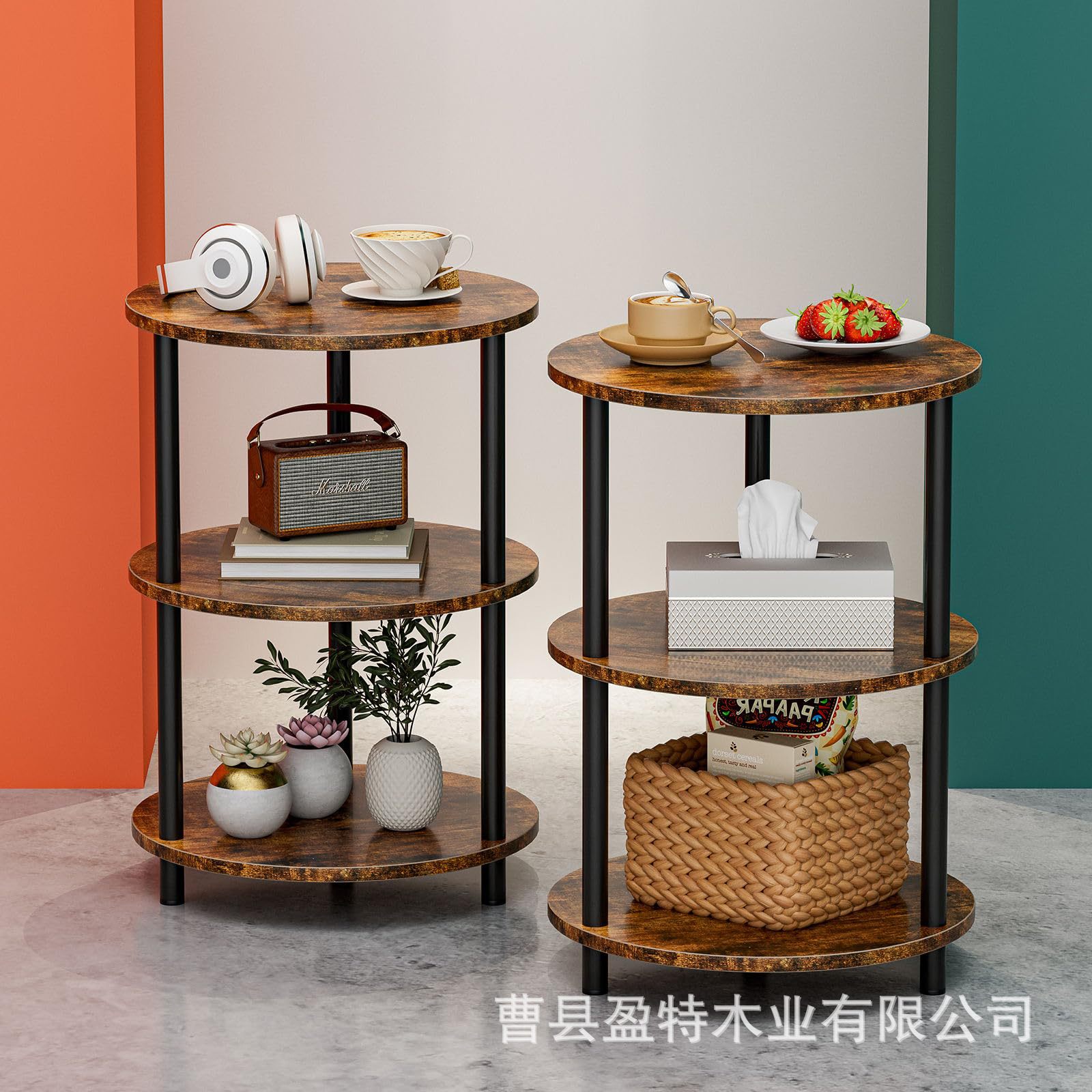 침실 거실 거실 거실 거실 용 테이블 소파 테이블 3 층 선반이있는 나무 둥근 보관 랙스토어 가기