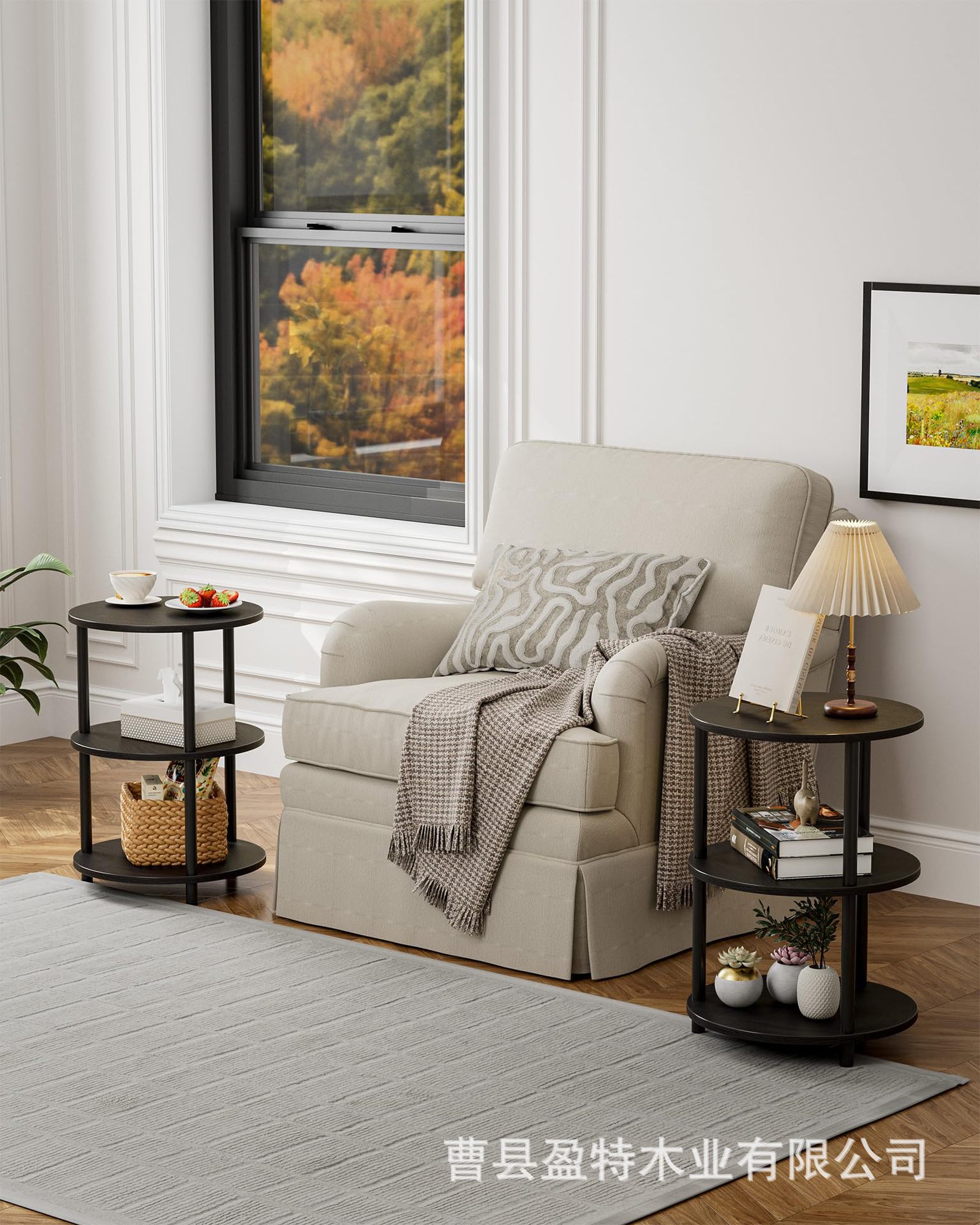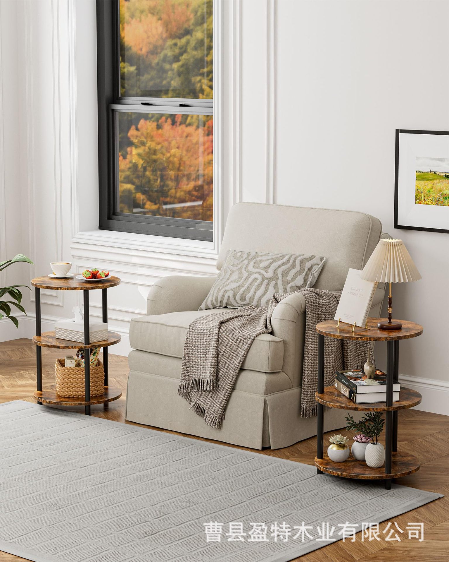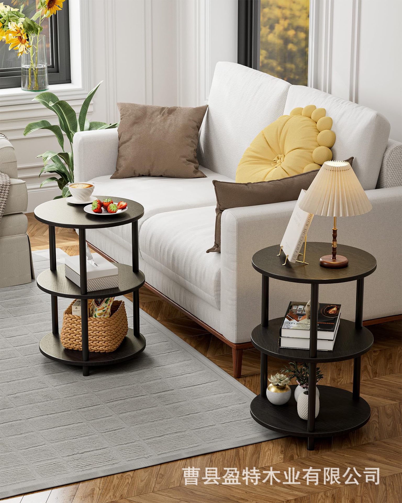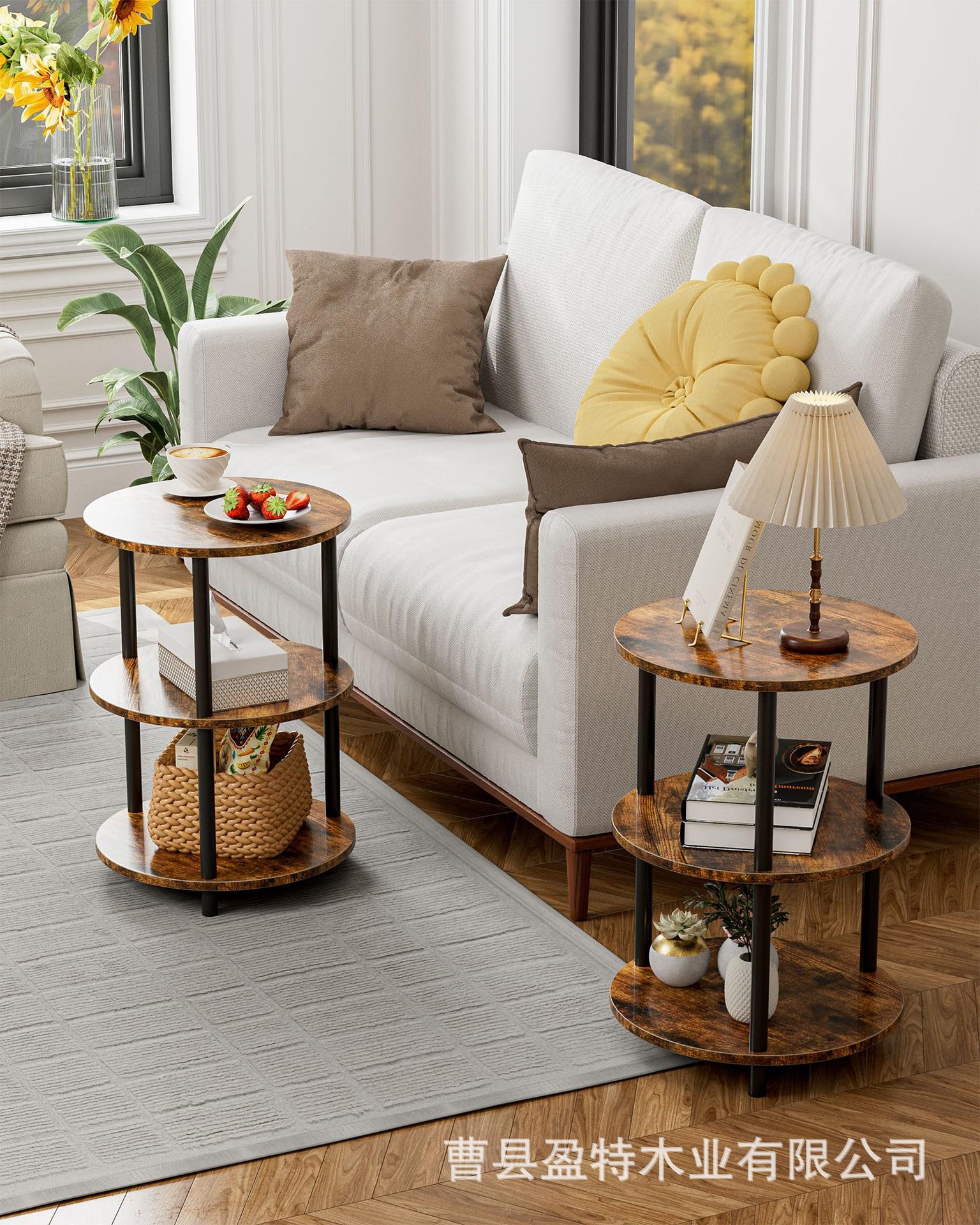 침실 거실 거실 거실 거실 용 테이블 소파 테이블 3 층 선반이있는 나무 둥근 보관 랙스토어 가기