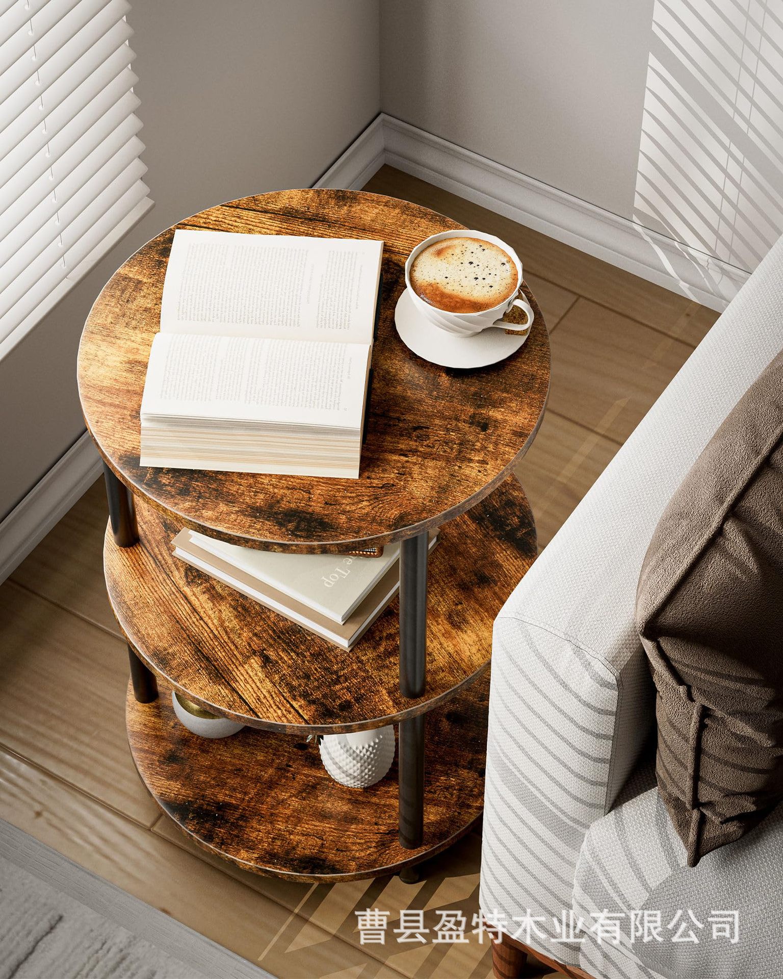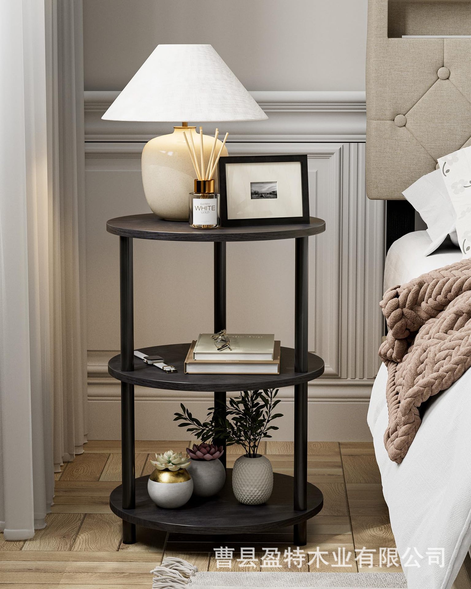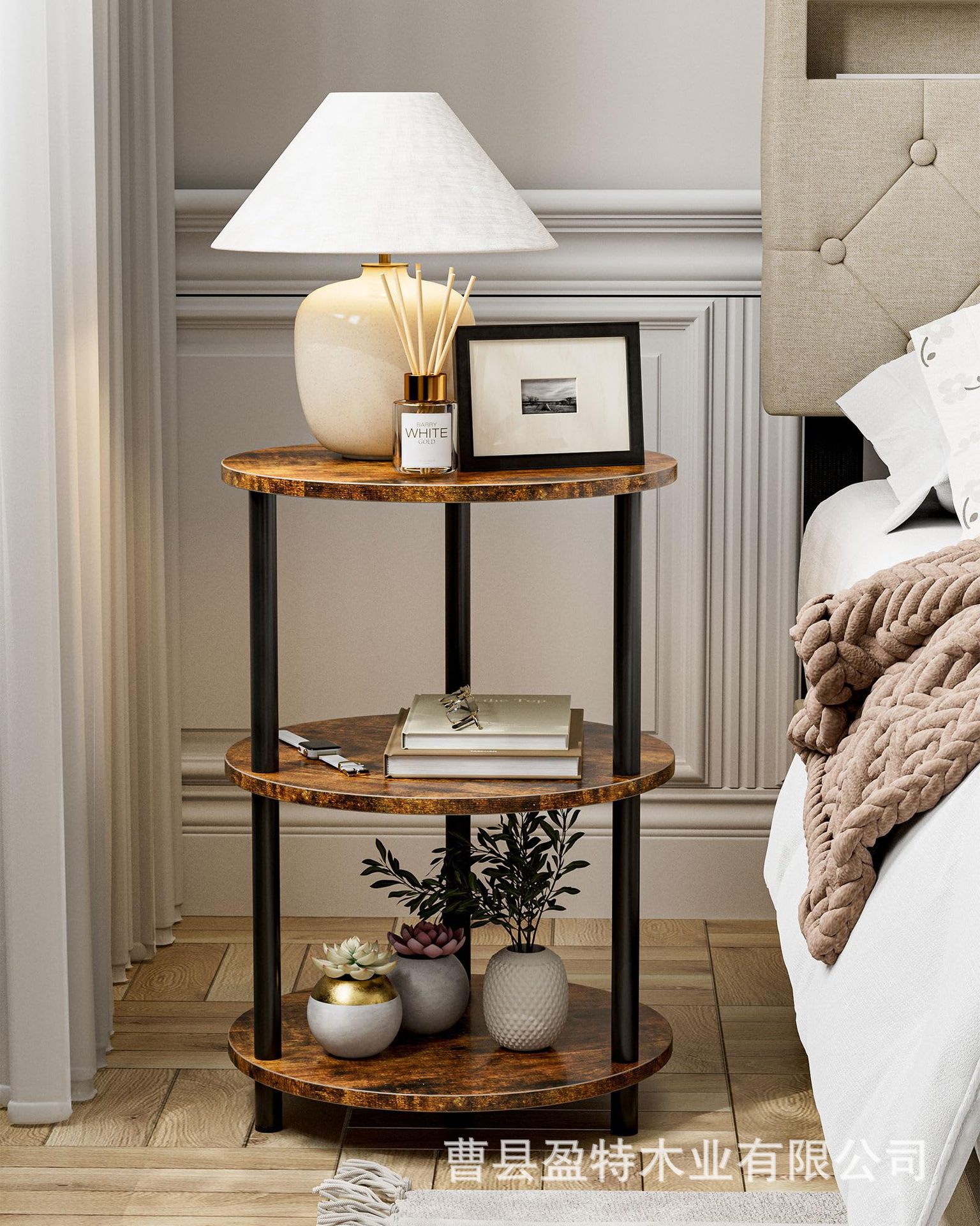 침실 거실 거실 거실 거실 용 테이블 소파 테이블 3 층 선반이있는 나무 둥근 보관 랙
