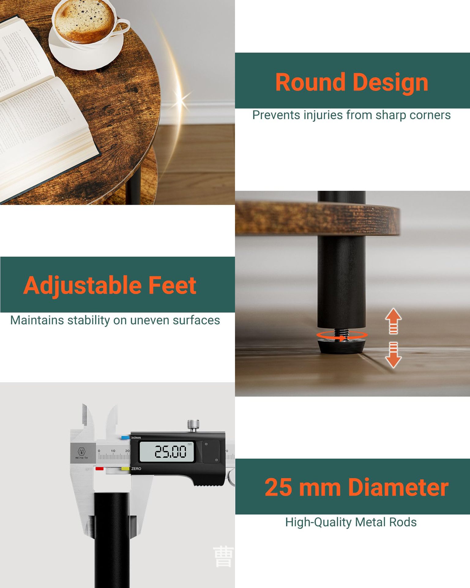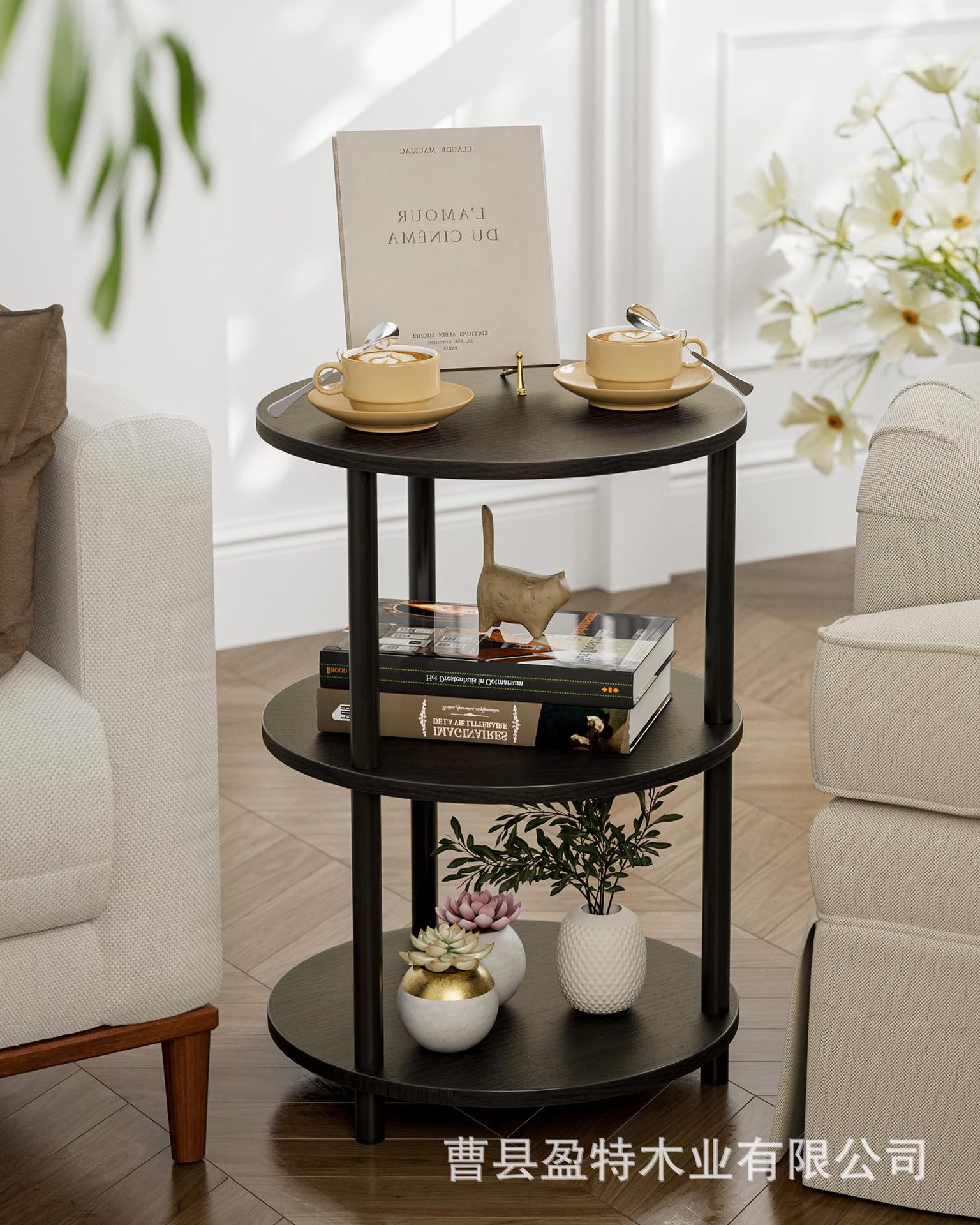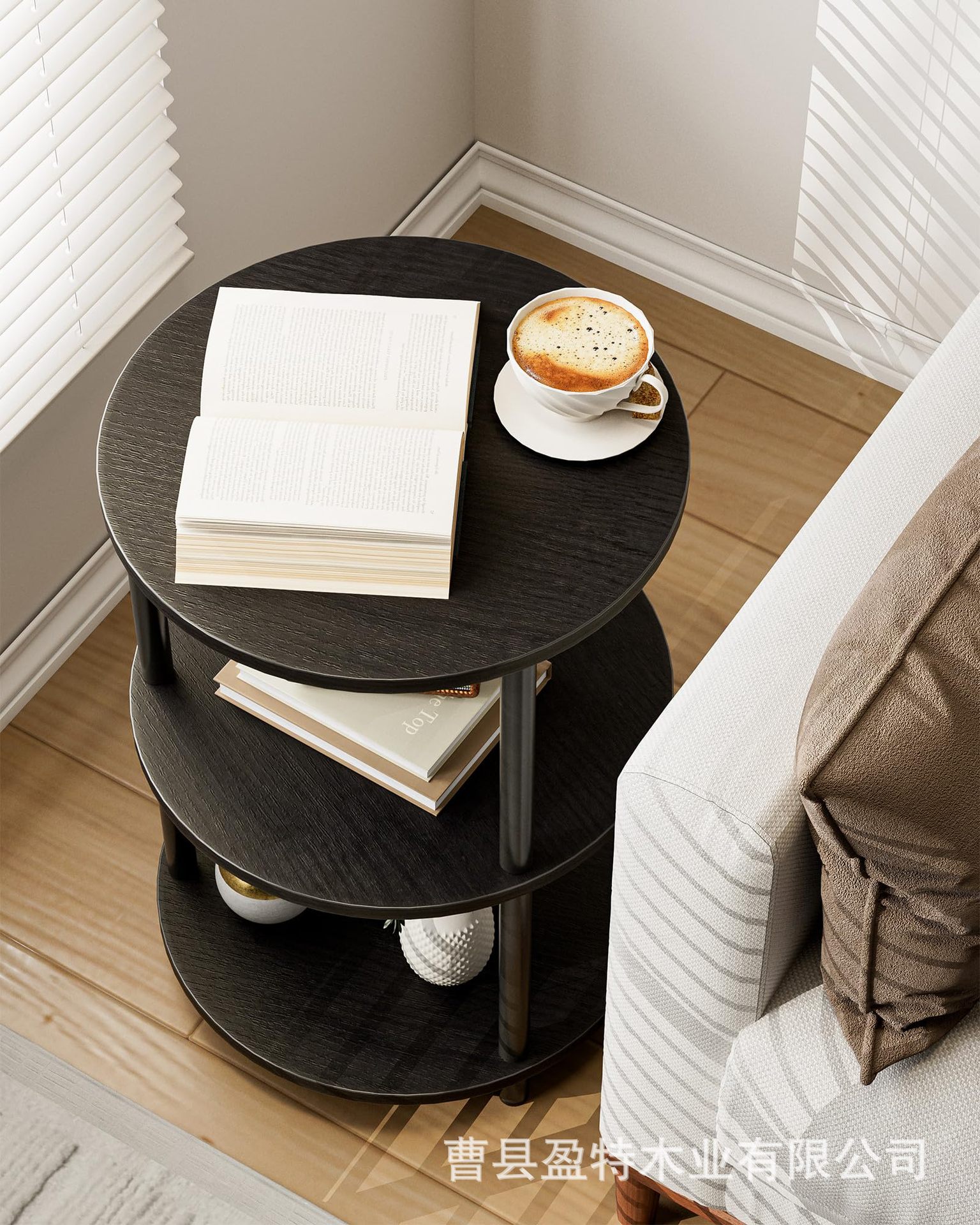 침실 거실 거실 거실 거실 용 테이블 소파 테이블 3 층 선반이있는 나무 둥근 보관 랙