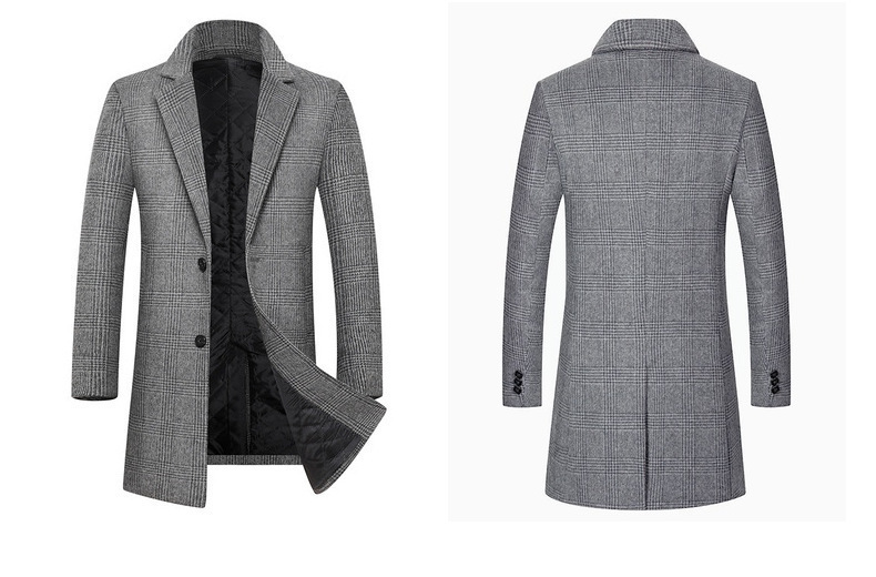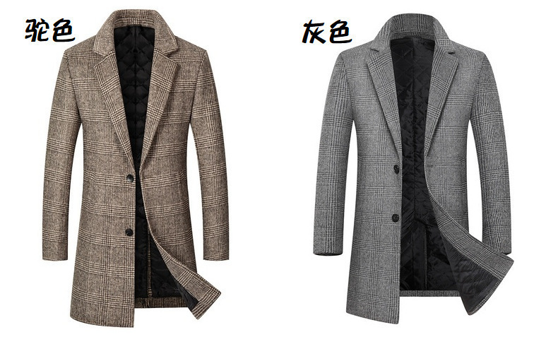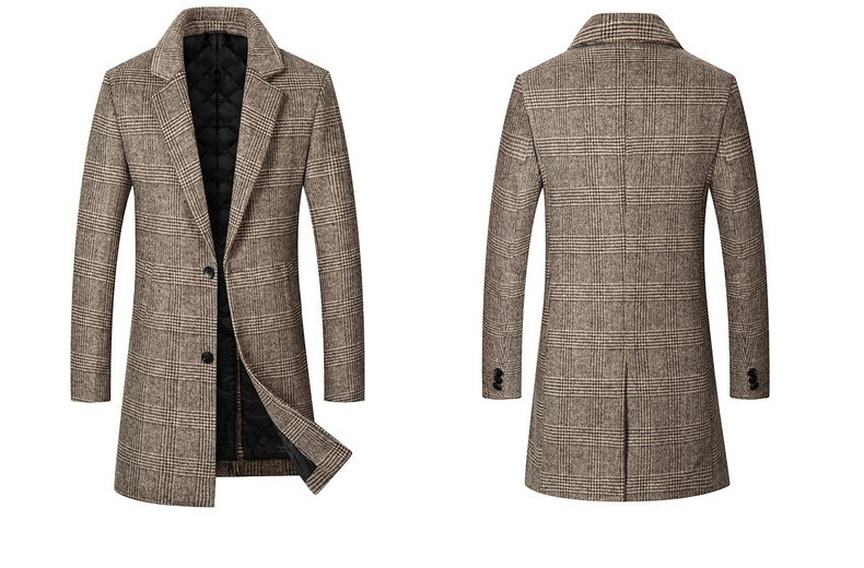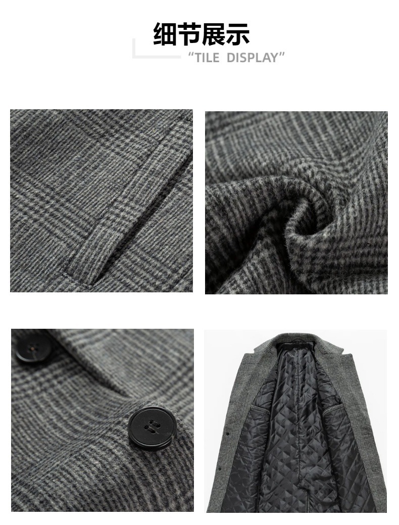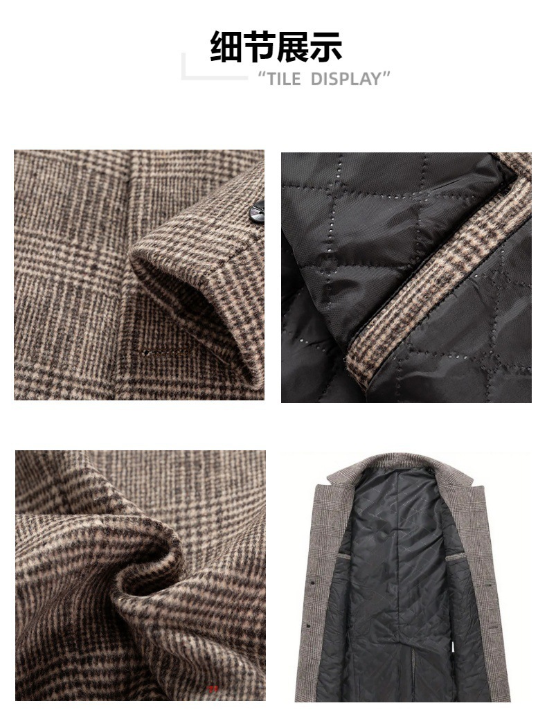 국경 간 가을과 겨울 두꺼운 퀼트 격자 무늬 모직 코트 중간 길이의 윈드 브레이커 슬림 핏 옷깃 재킷 남성용 코트스토어 가기