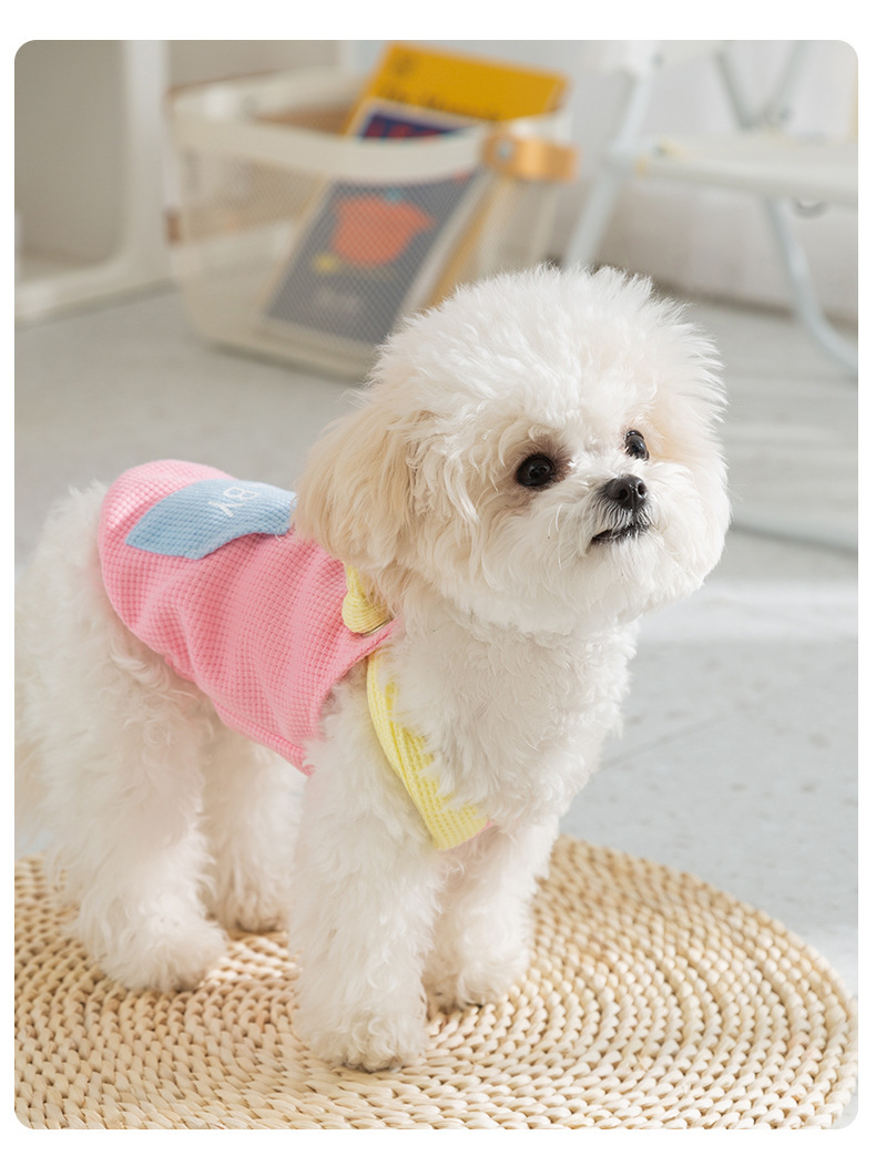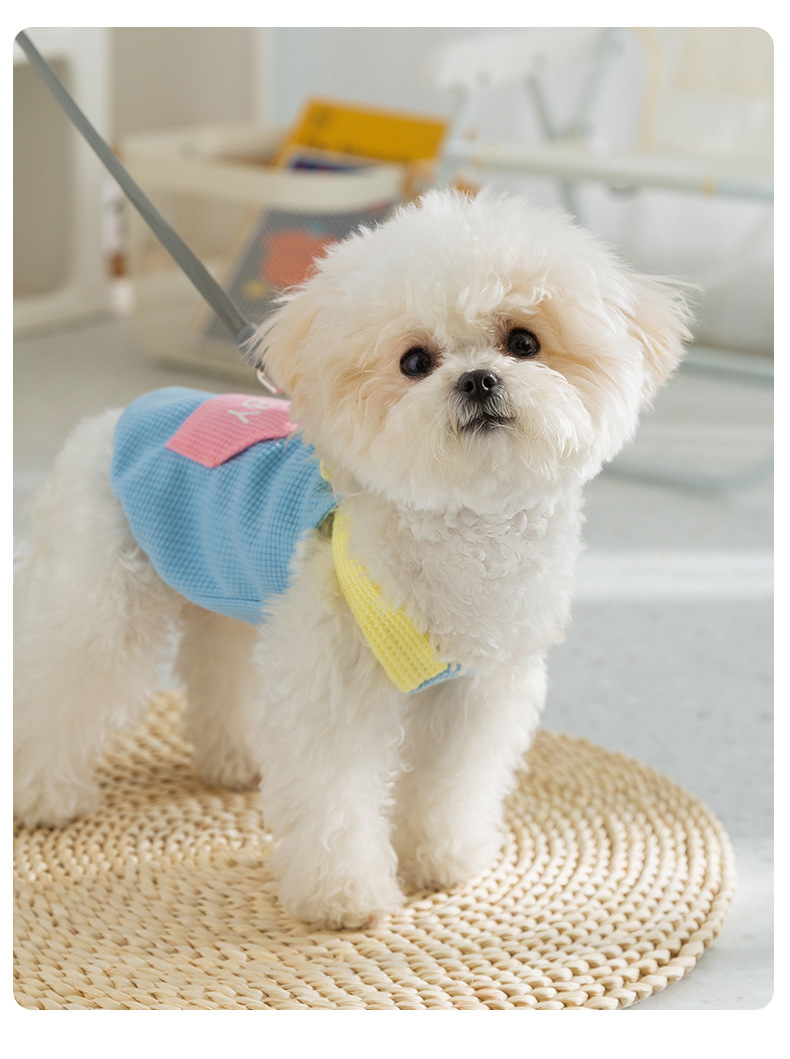 일본과 한국의 봄과 여름 새로운 마카롱 포켓 견인 슬링 개 조끼 얇은 견인 애완 동물 옷 배치