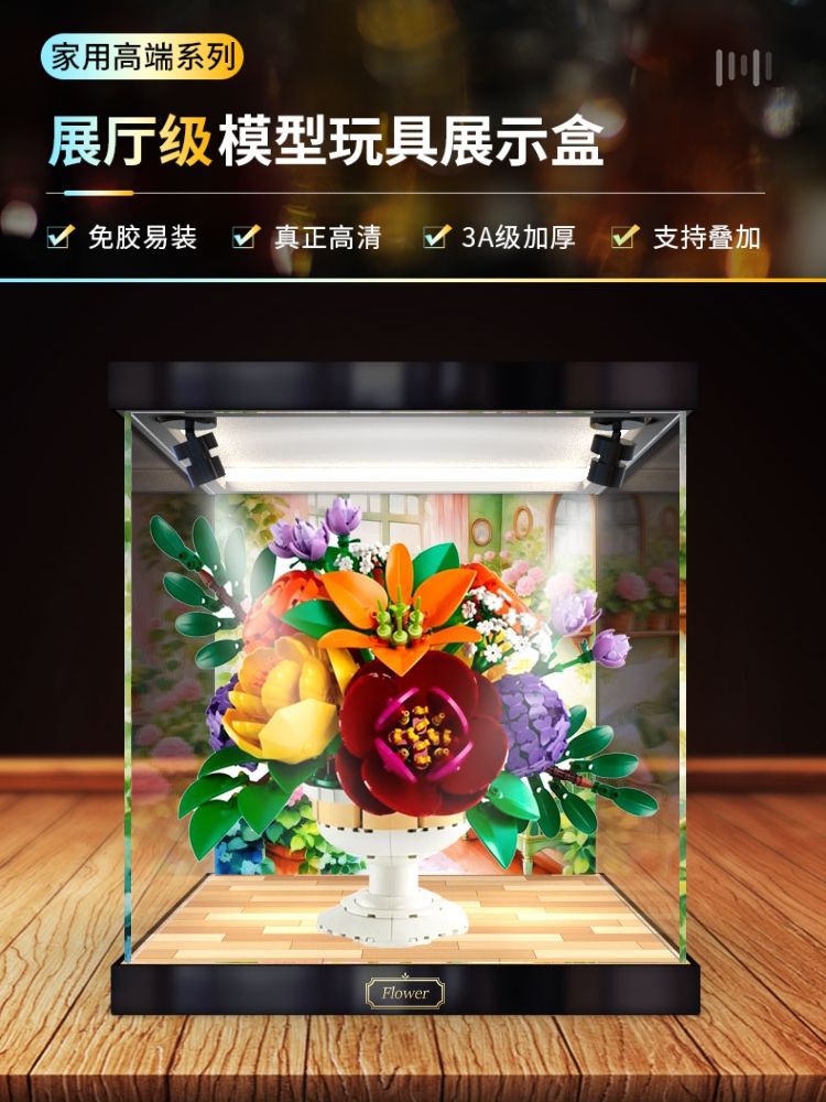 레고 10345 비밀 영역 꽃 침대 빌딩 블록에 적합한 아크릴 저장 상자 조립 장난감 모델 먼지 커버