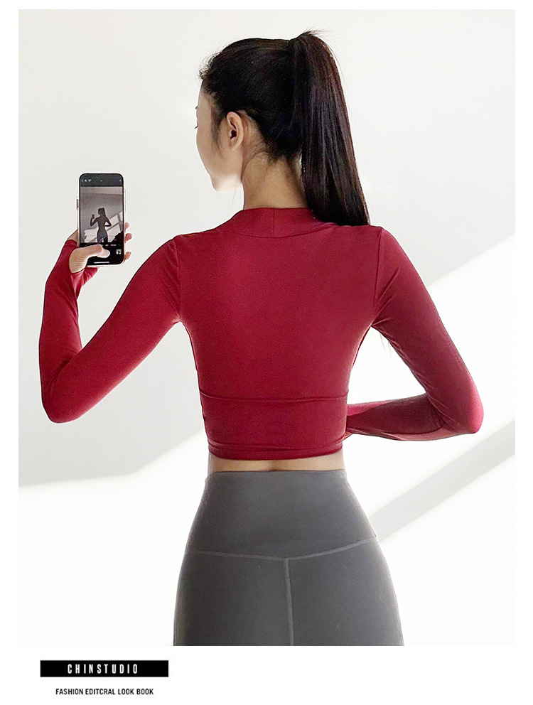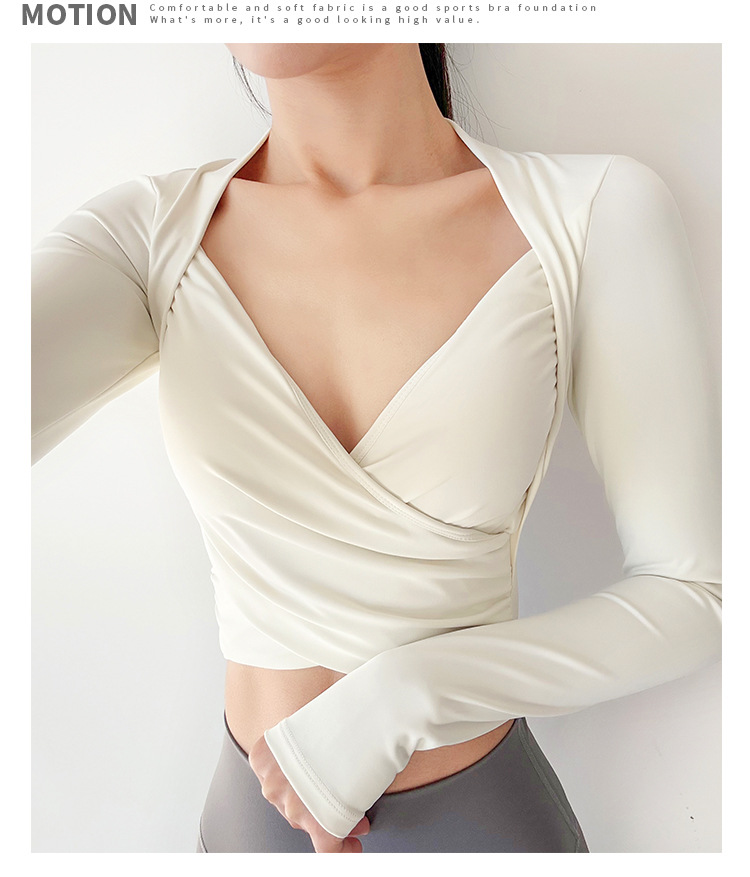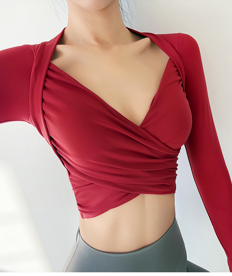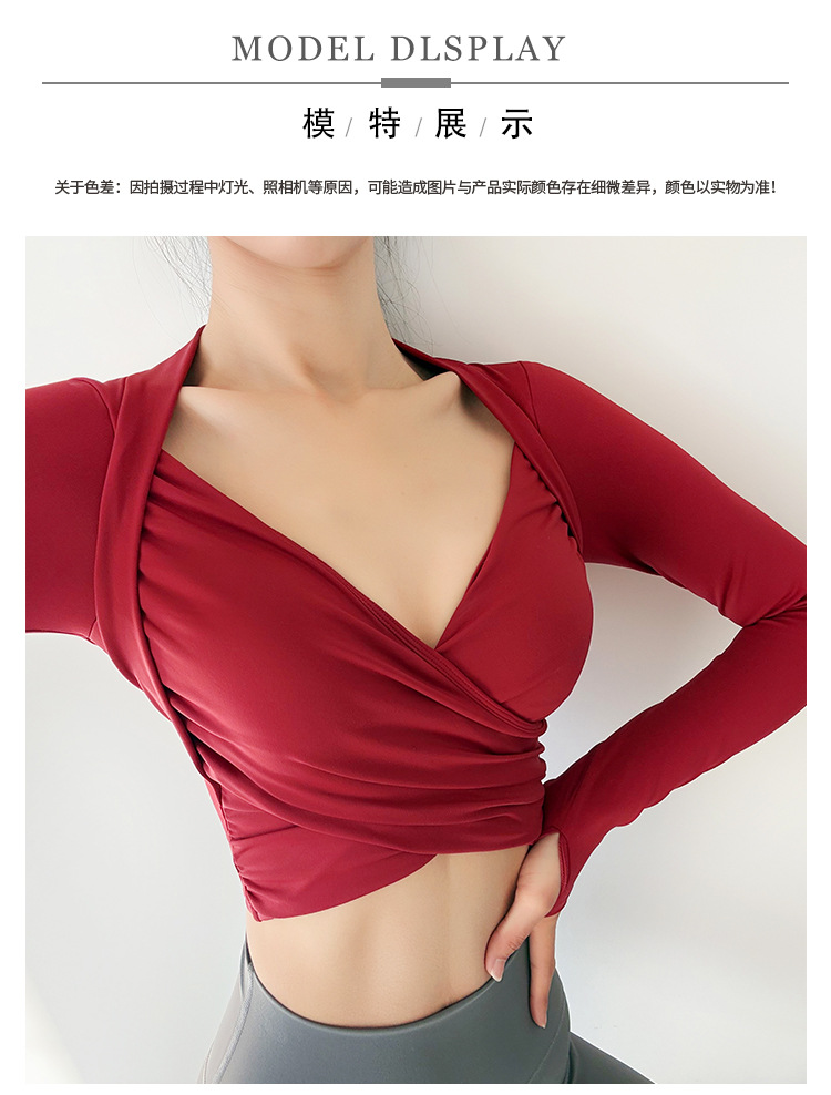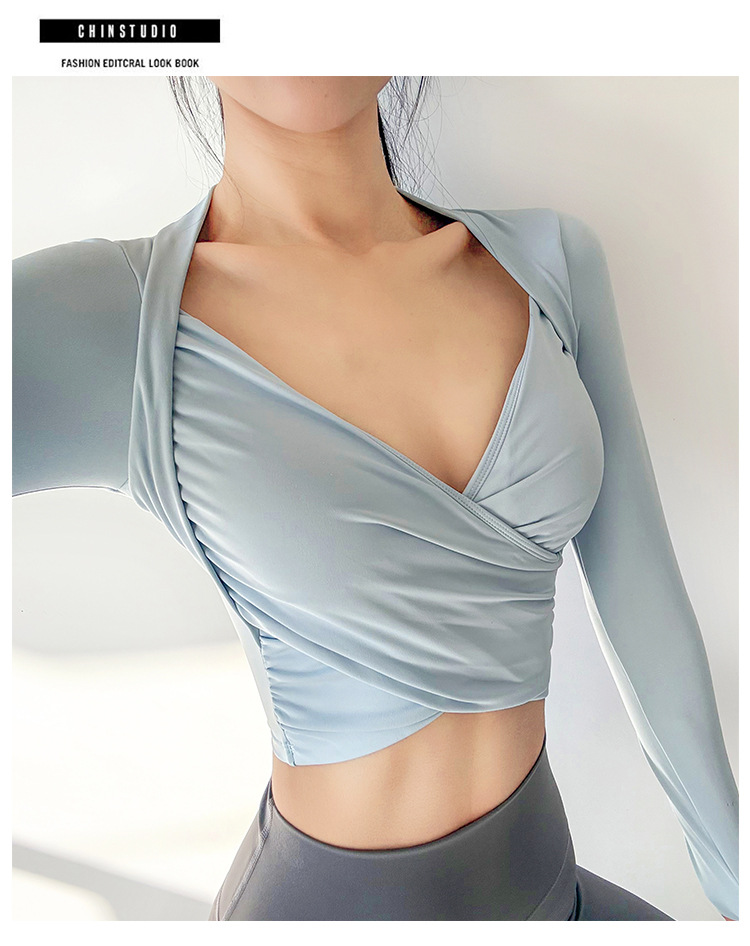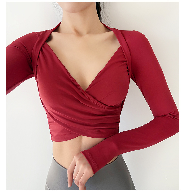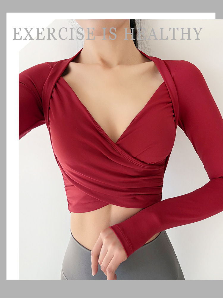 가을과 겨울 V-Neck 크로스 통합 고정 컵 요가 외부 피트니스 의류 스포츠 요가 의류 전문 퀵 드라이 탑 여성