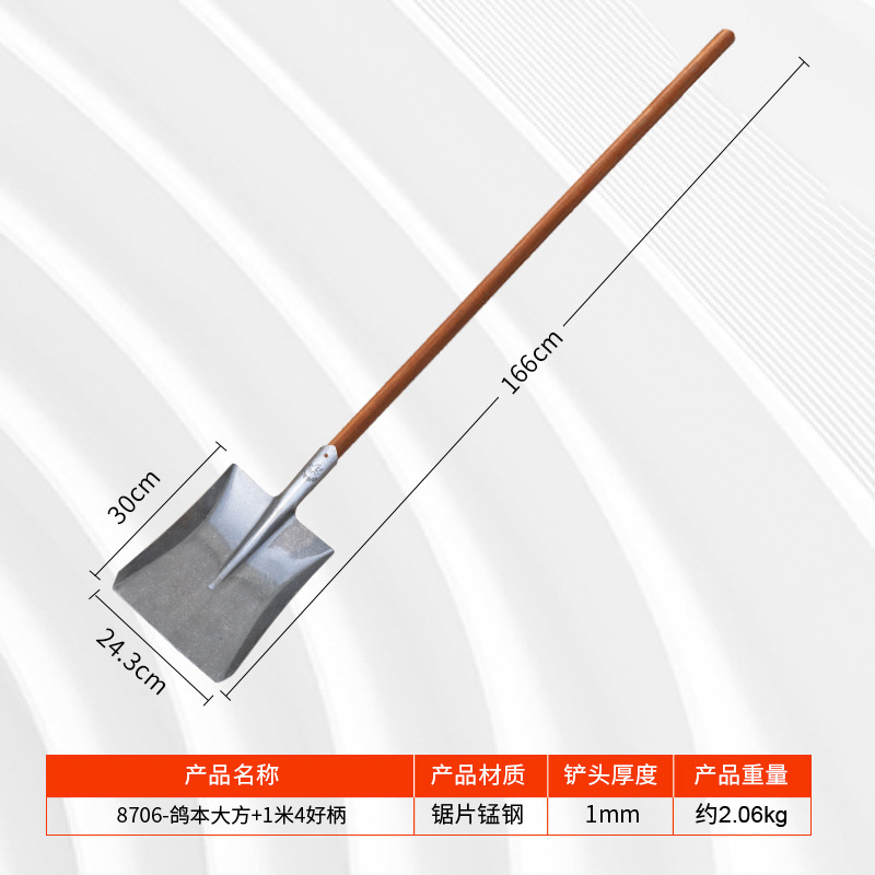 삽 망간 강철 삽 자연 색상 기본 색상 강철 삽 사각형 나무 손잡이 사이트 삽 접시 삽 큰 삽 핸들 도매 핸들