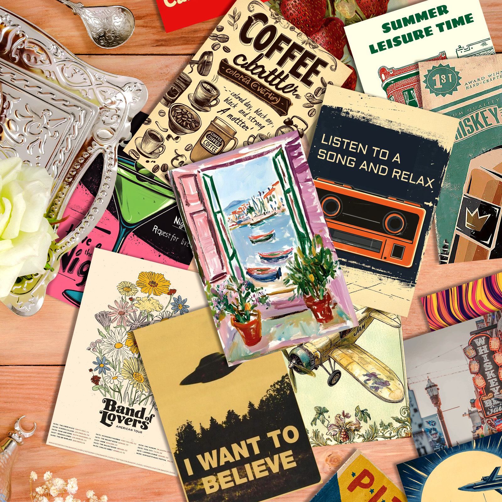 50 복고풍 포스터 시리즈 높은 색상 가치 북유럽 스타일 벽 카드 장식 아마존 국경 도매 장식 벽스토어 가기