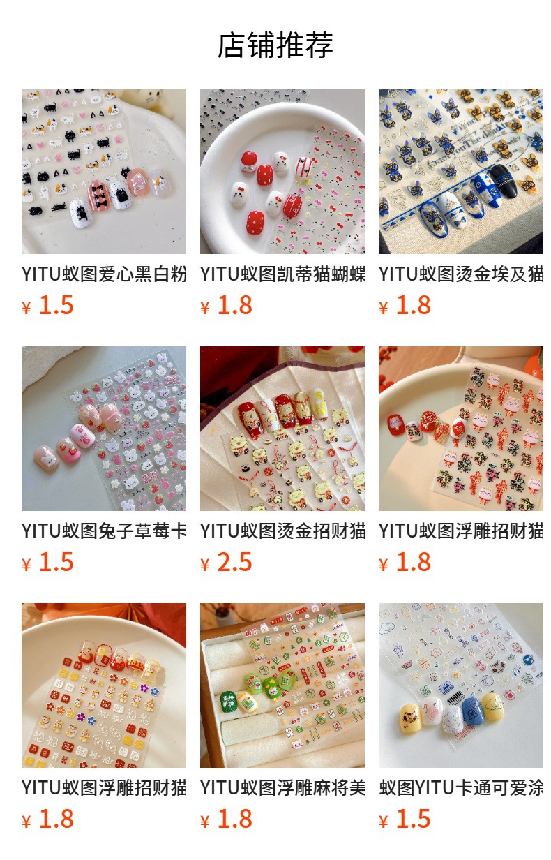 YITU 개미 그림 플랫 새끼 고양이 네일 아트 스티커 귀여운 만화 얇은 힘든 네일 장식 스티커 접착 YT4568스토어 가기