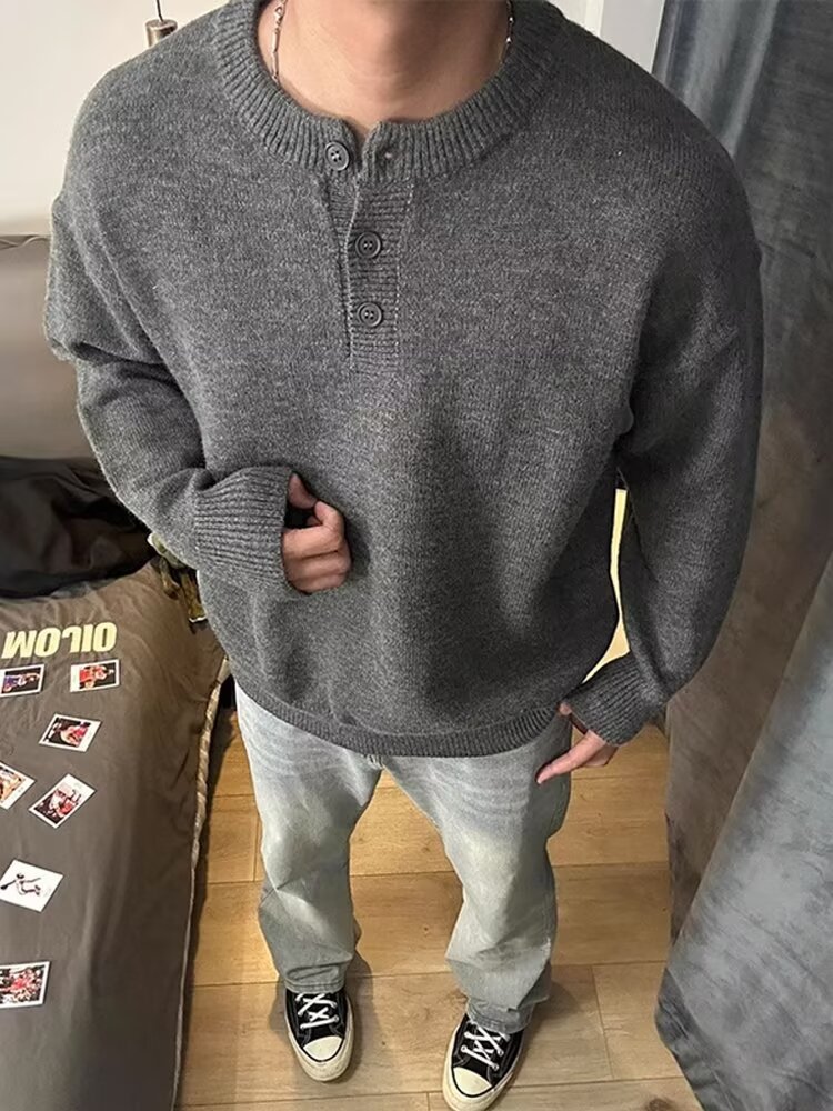 2025 헨리 칼라 스웨터 남자 봄과 가을 캐주얼 내베이스 셔츠 아메리칸 스타일 더피 안 핸섬 남자 스웨터 가을과 겨울
