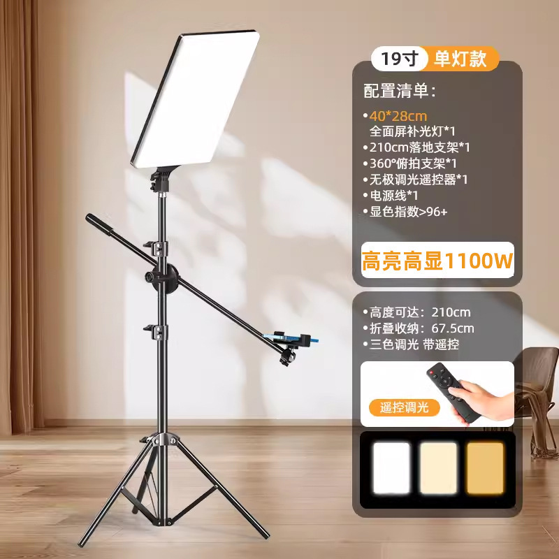 • 19inch [프로페셔널 브라이트닝 1100W] 라이브 스트리밍/사진 + 플로어 스탠딩 오버헤드 촬영 브래킷·