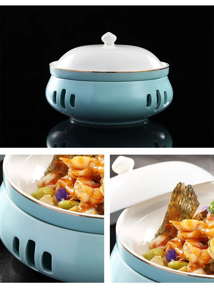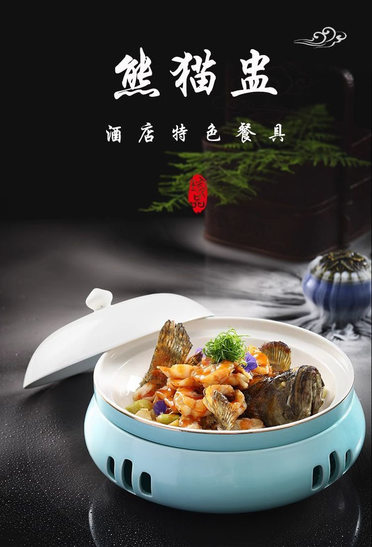 팬더 컵 패션 라운드 세라믹 열 보존로 드럼 플레이트 레스토랑 개인 요리 창조적 인 식기