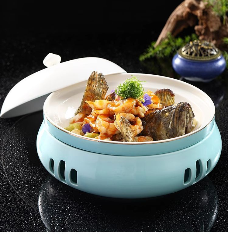 팬더 컵 패션 라운드 세라믹 열 보존로 드럼 플레이트 레스토랑 개인 요리 창조적 인 식기스토어 가기
