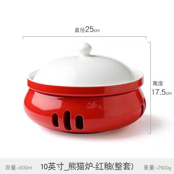 • 10inch _팬더 스토브-빨간 유약(완전한 세트)에는 양초가 함께 제공됩니다.