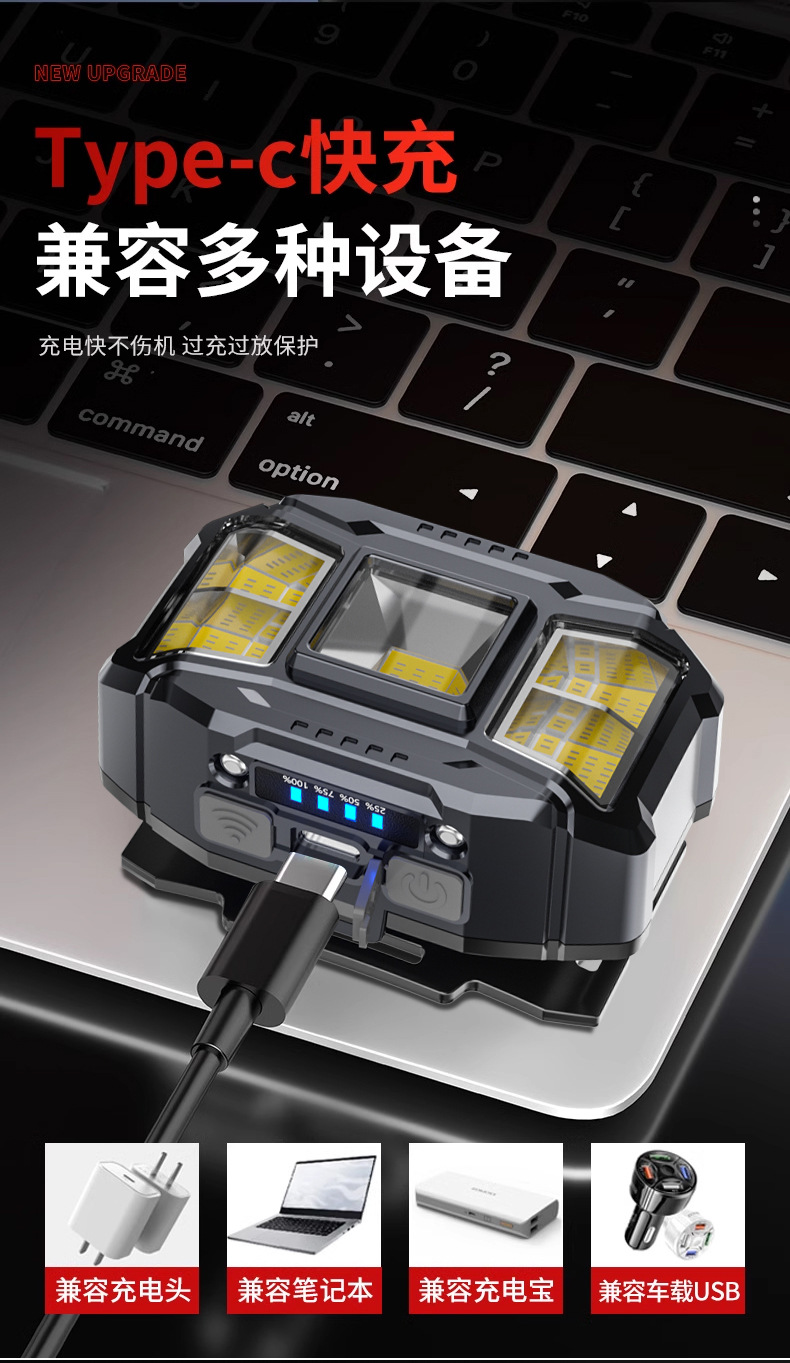 대형 투광 조명 작업 헤드 램프 강한 빛 슈퍼 밝은 충전 긴 배터리 수명 붉은 빛 야외 자동차 수리 난시 유도 광부의 램프스토어 가기