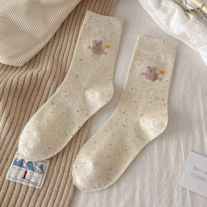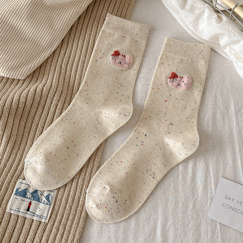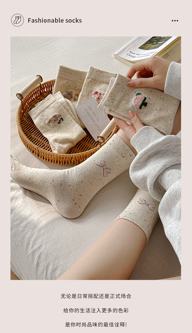 24 가을 새 스타일 양말 일본 스타일 만화 활 도트 원사 여성 미드 튜브 양말 패션 아카데미 스타일 면 여성 양말스토어 가기