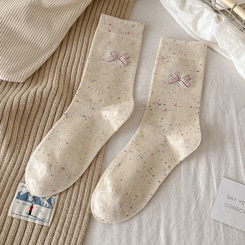 24 가을 새 스타일 양말 일본 스타일 만화 활 도트 원사 여성 미드 튜브 양말 패션 아카데미 스타일 면 여성 양말