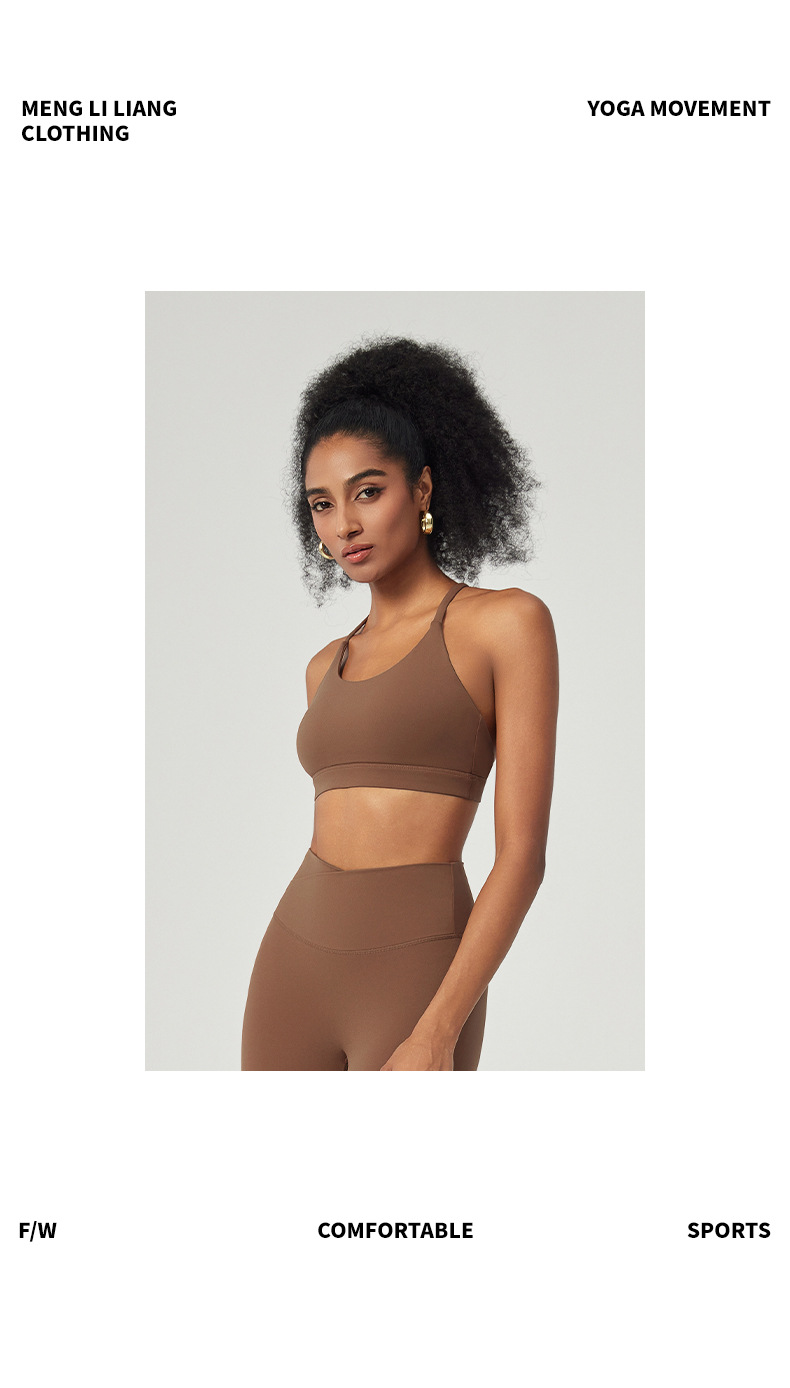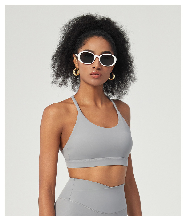 라이크라 스포츠 속옷 알몸 요가 브래지어 스틸 링 없음 얇은 벨트 피트니스 탑 여성 목 아름다운 백밴드 가슴 패드