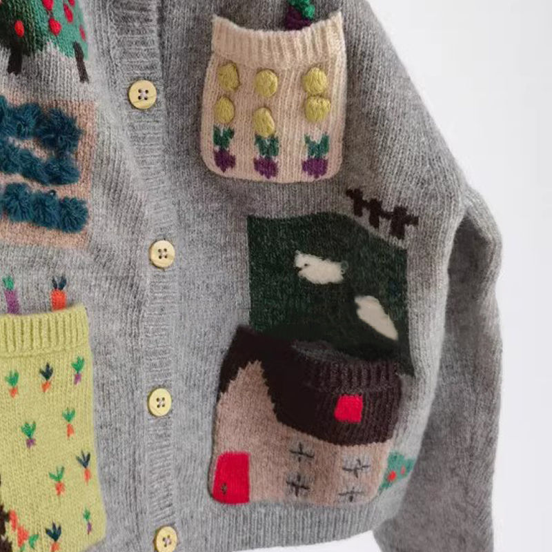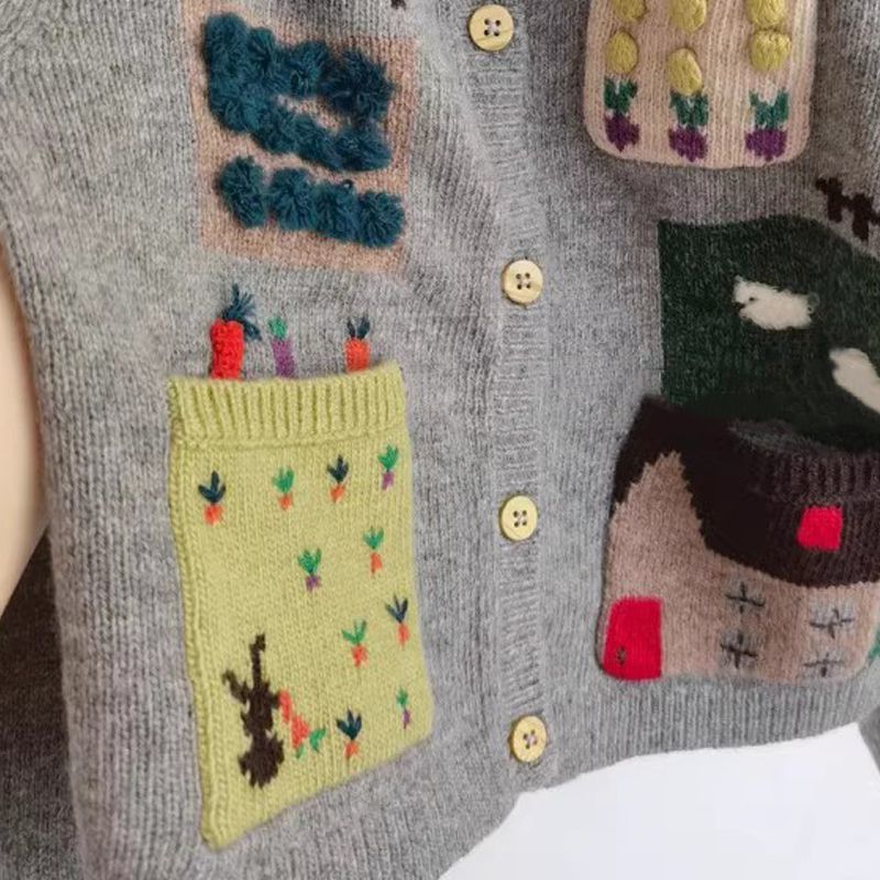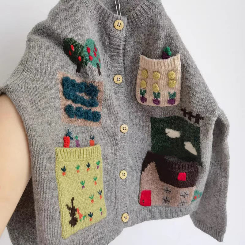 아동복 소녀 스웨터 가을 2024 어린이 서양식 그레이 베이비 자수 카디건 니트 코트 탑