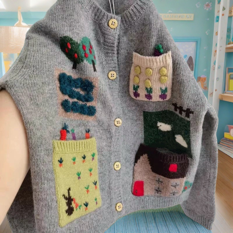 아동복 소녀 스웨터 가을 2024 어린이 서양식 그레이 베이비 자수 카디건 니트 코트 탑스토어 가기
