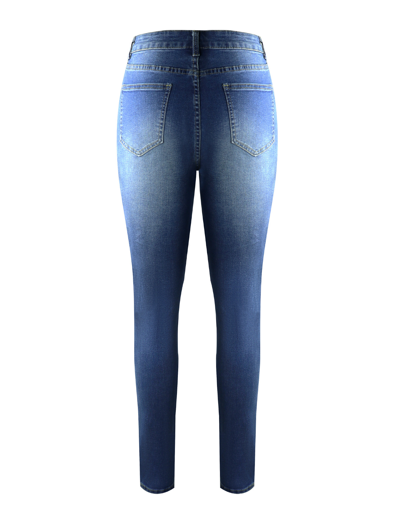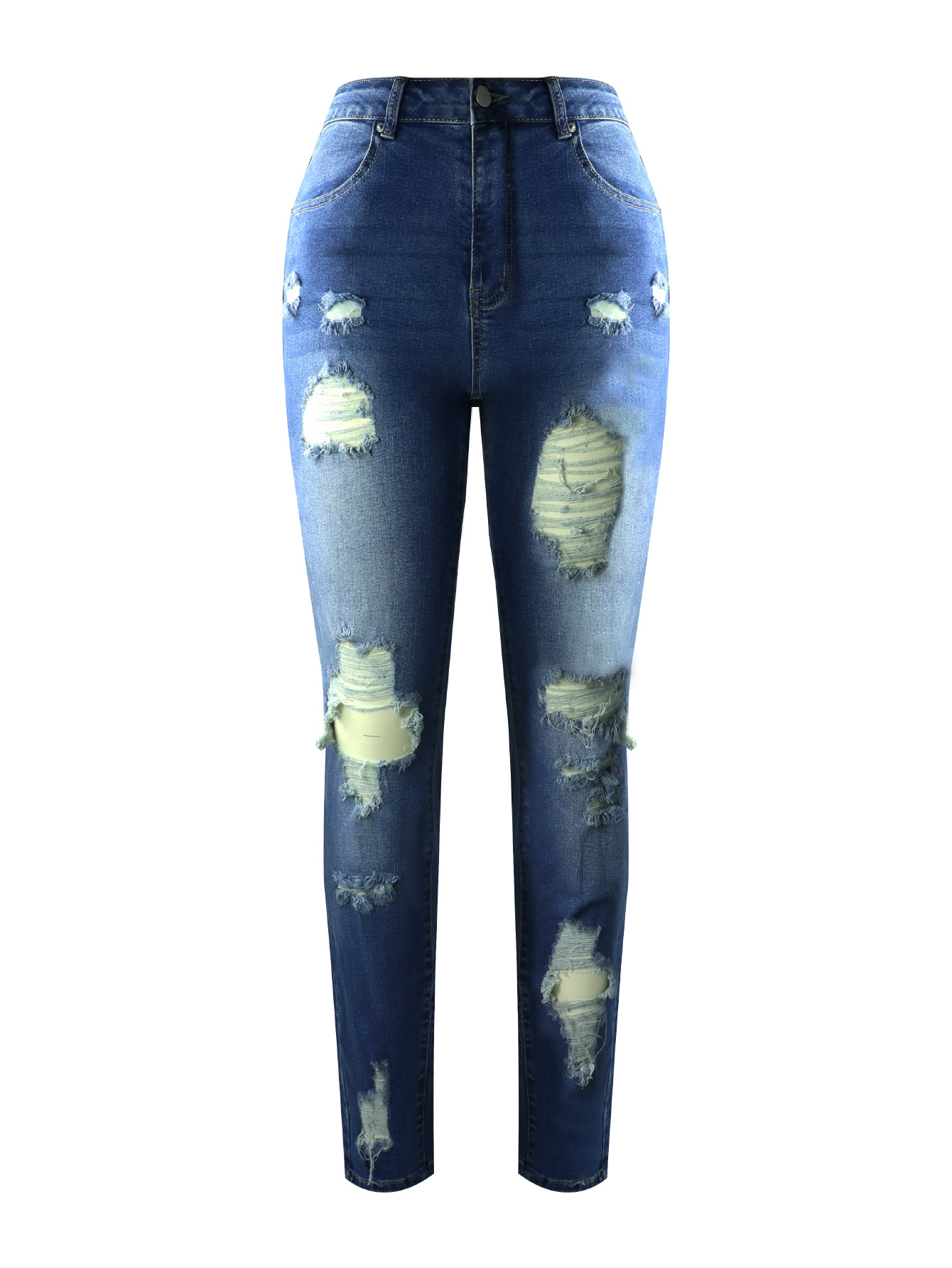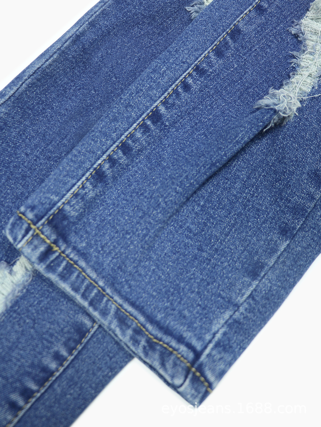 아마존 알리익스프레스 2025 신상 여성복 유럽 및 미국 해외직구 다크블루 타이트 하이웨이스트 데미지 진 여성 스키니진