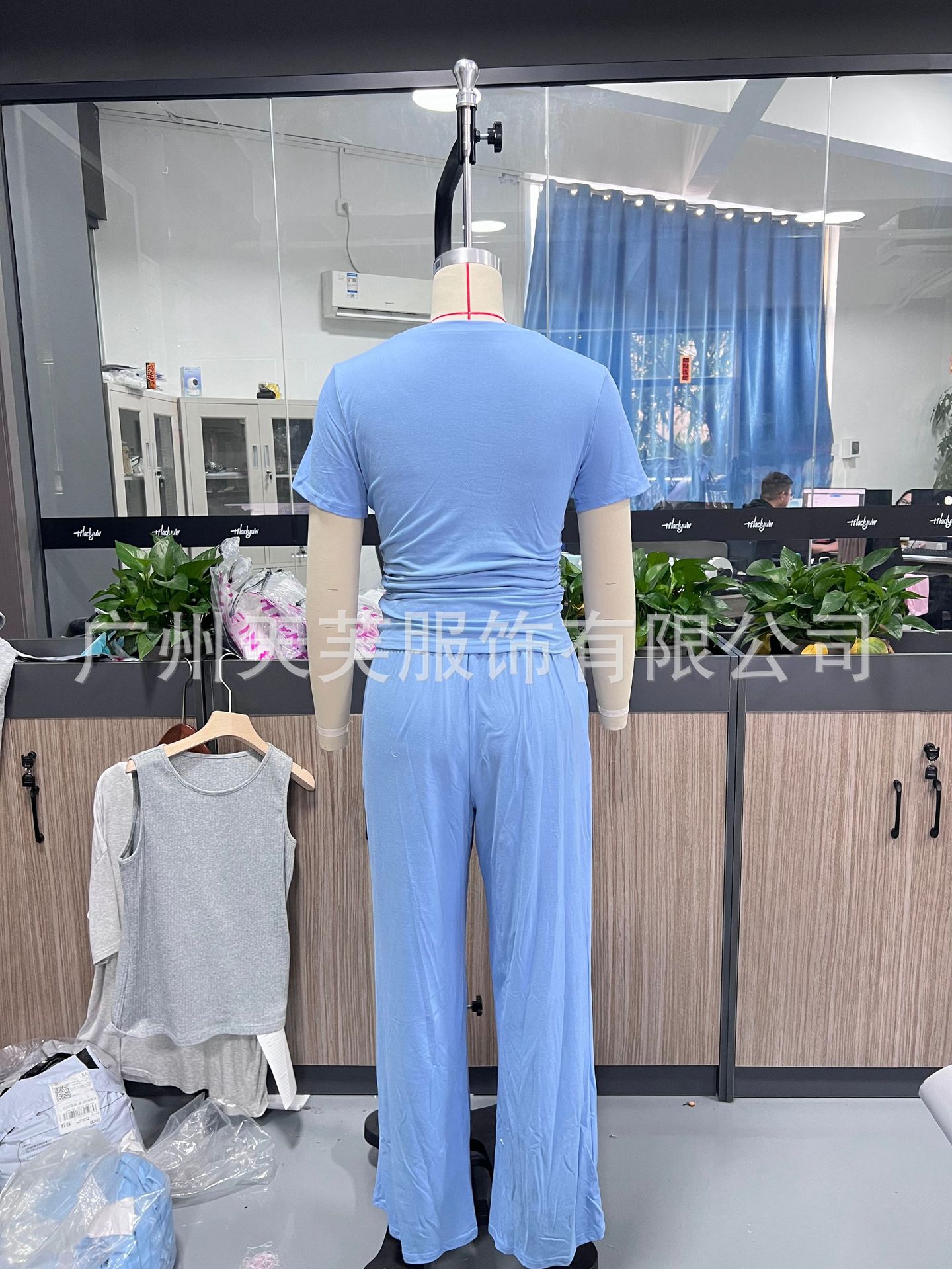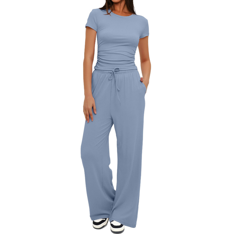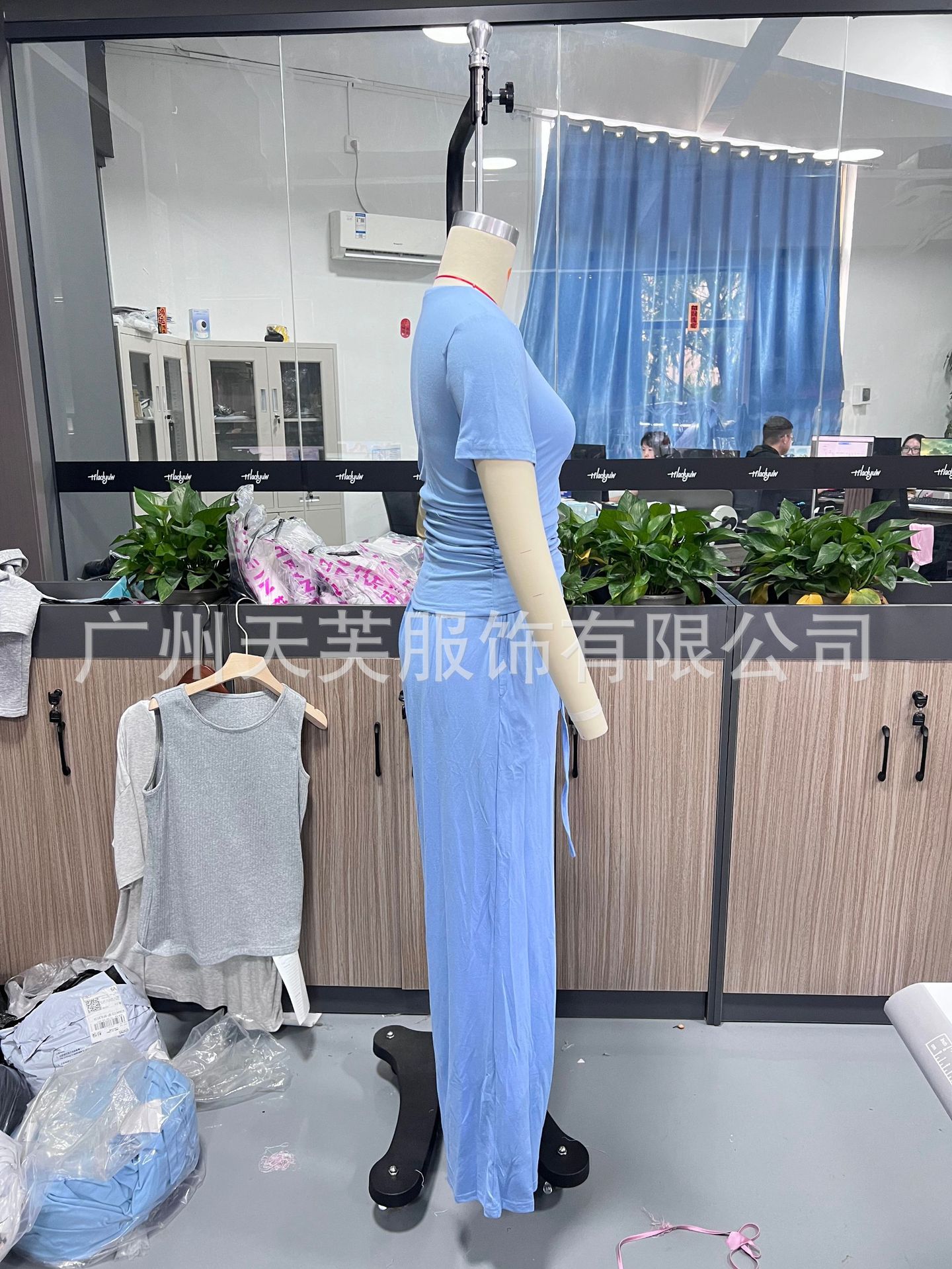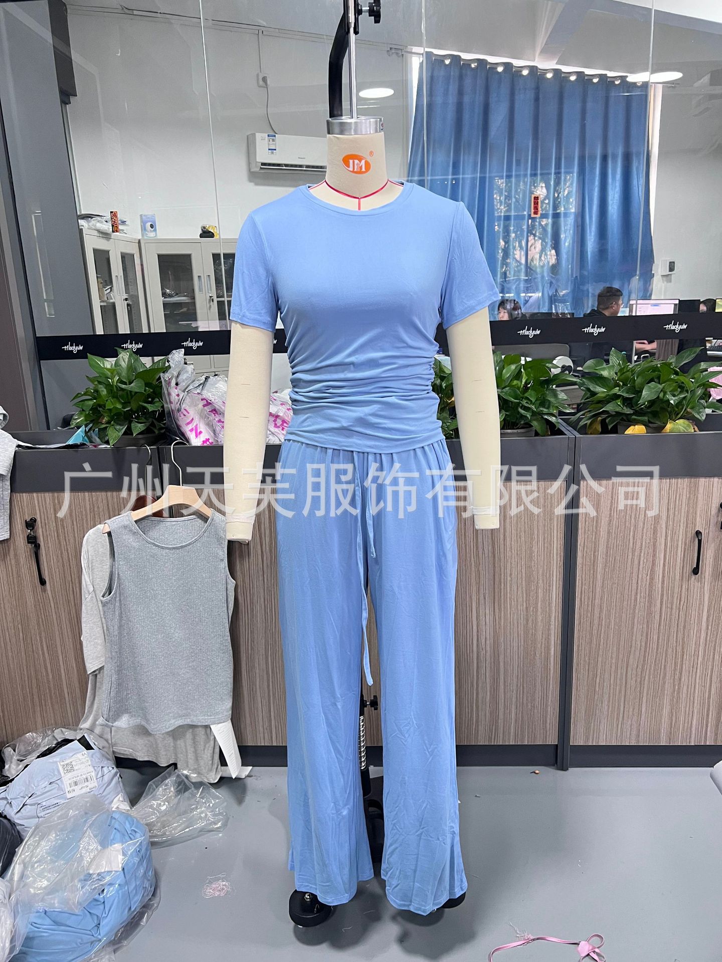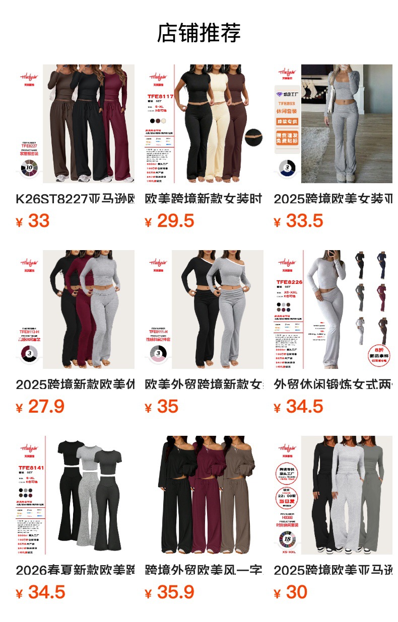 2025년 유럽 및 미국 아마존 신상품 단색 캐주얼 긴팔 세트 상의 하이웨이스트 와이드 팬츠 운동복스토어 가기