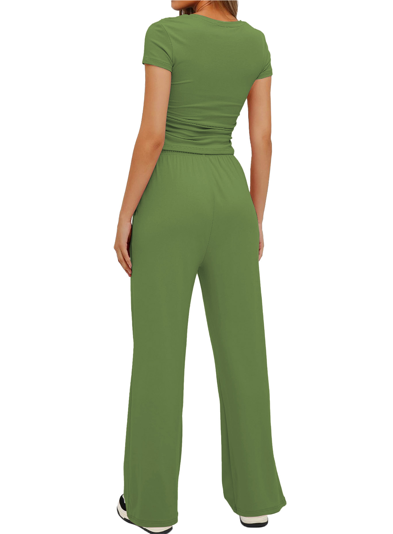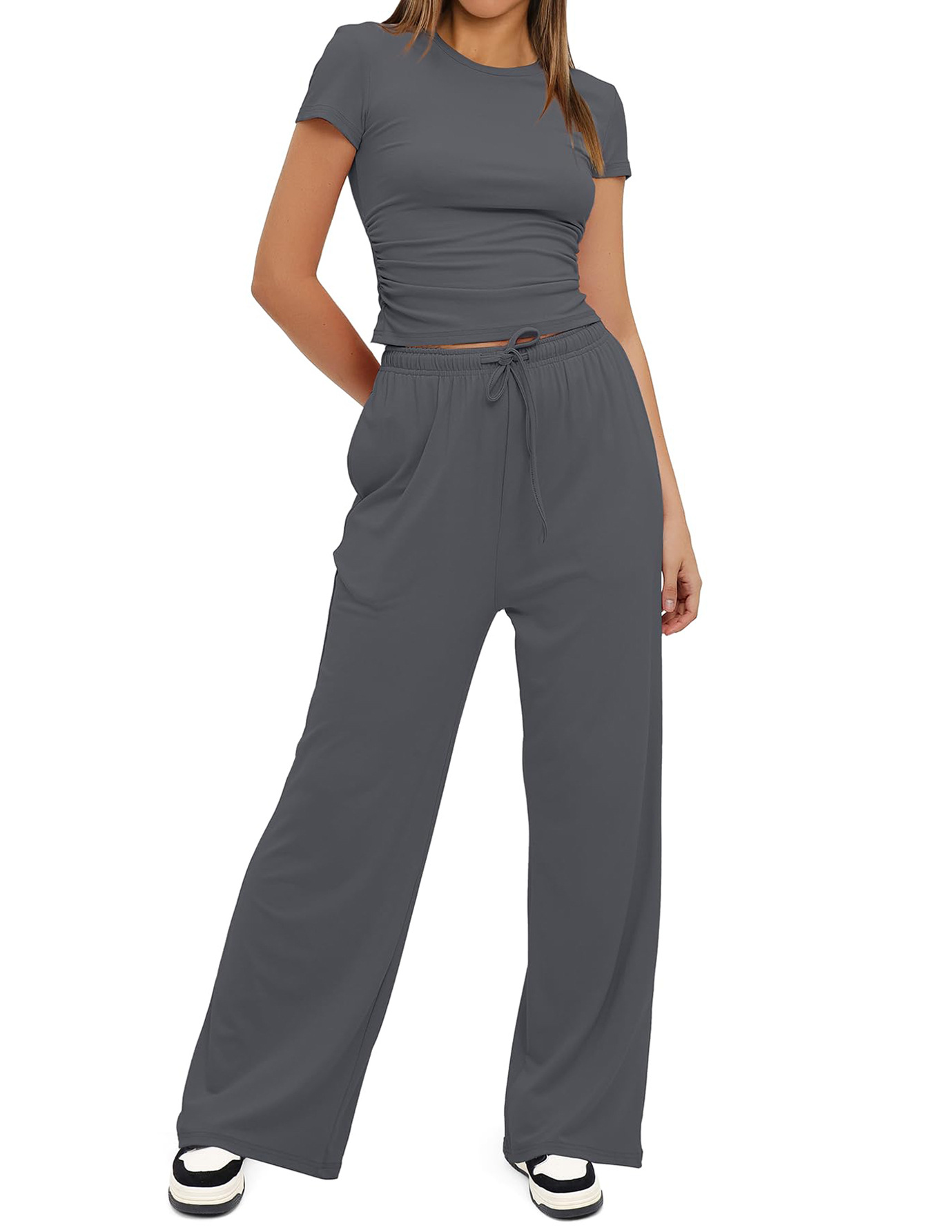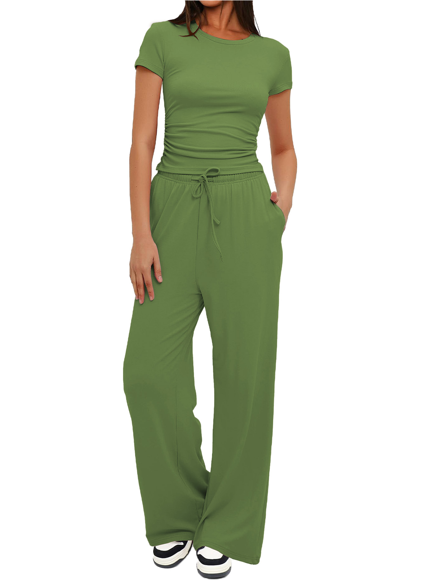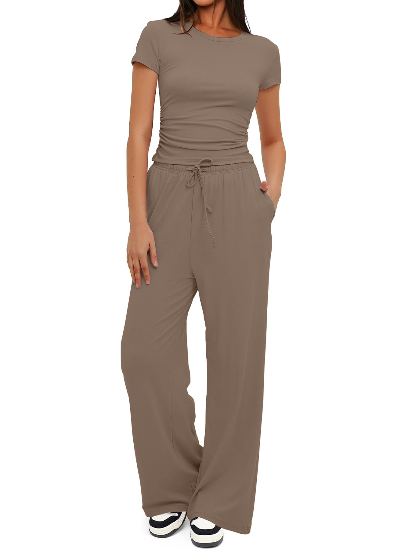 2025년 유럽 및 미국 아마존 신상품 단색 캐주얼 긴팔 세트 상의 하이웨이스트 와이드 팬츠 운동복스토어 가기