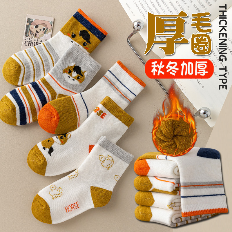 어린이 양말 도매 소년 가을과 겨울 기모 두꺼운 아기 양말 소녀 Zhuji 중간 스타킹 아기 바닥 양말스토어 가기