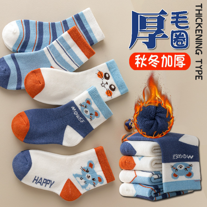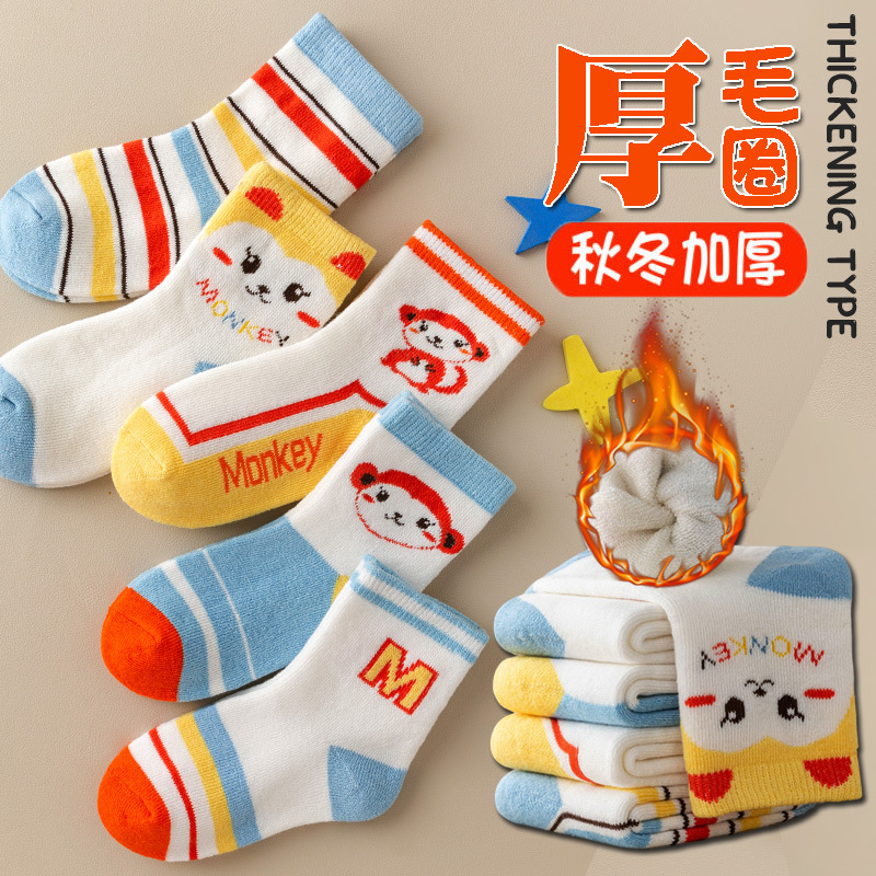 어린이 양말 도매 소년 가을과 겨울 기모 두꺼운 아기 양말 소녀 Zhuji 중간 스타킹 아기 바닥 양말