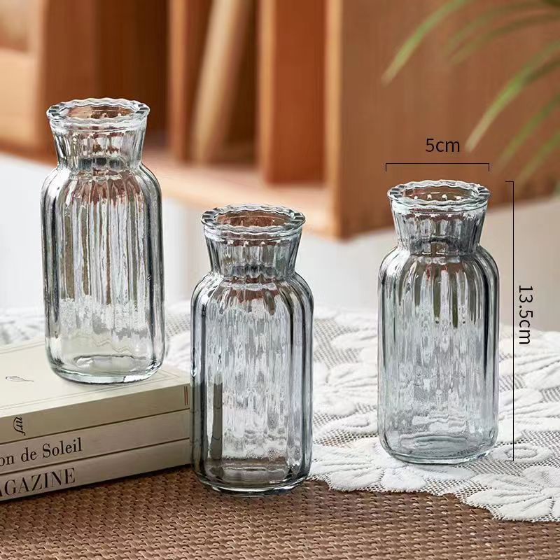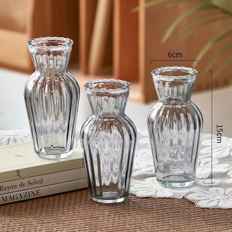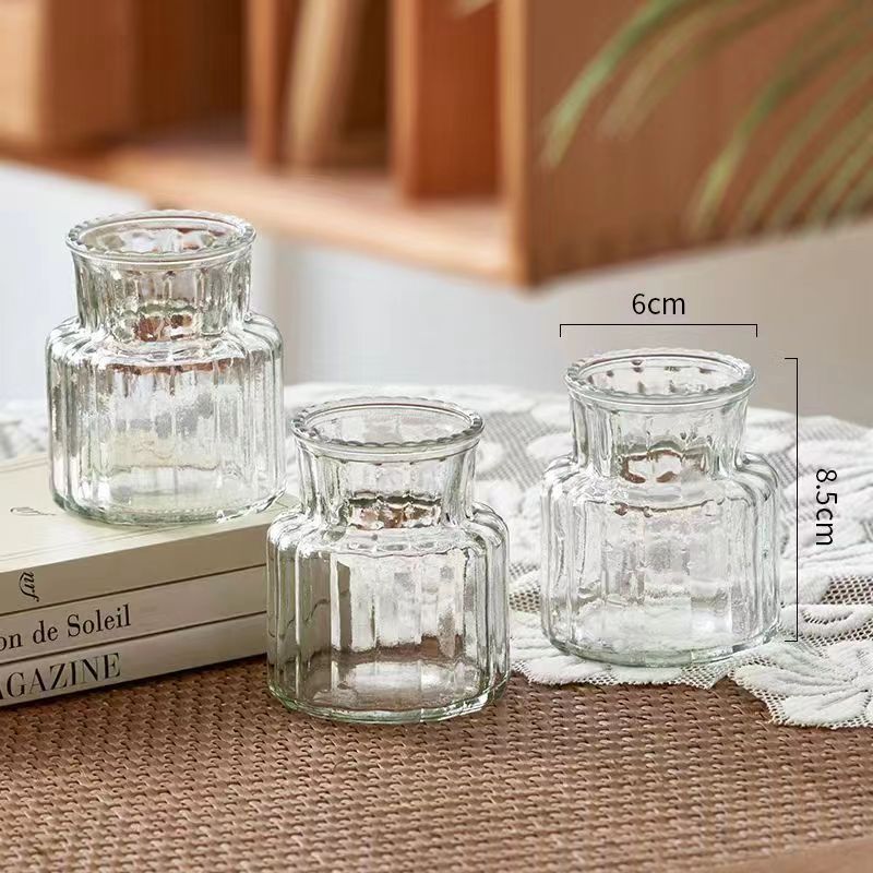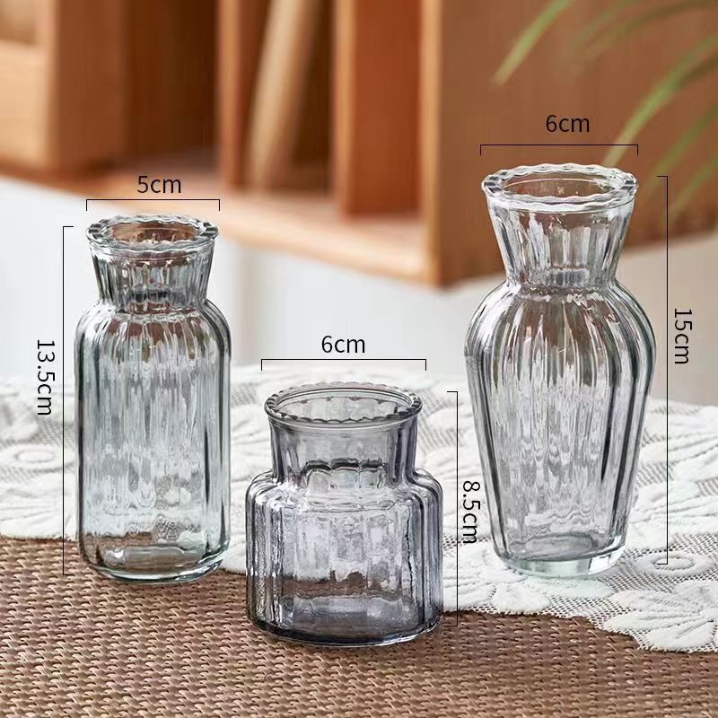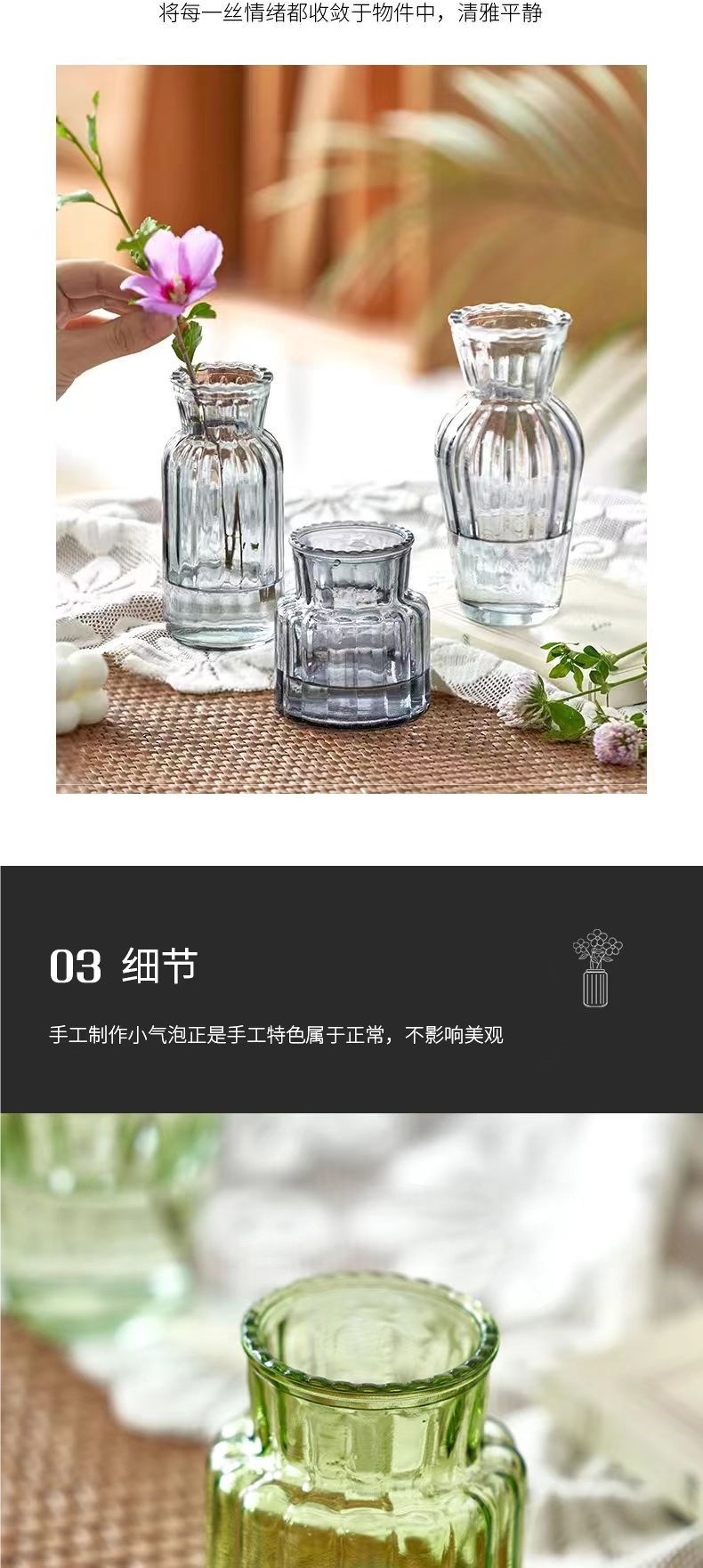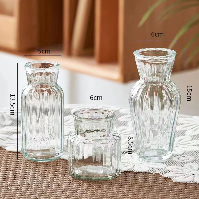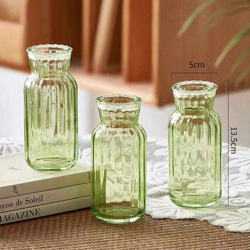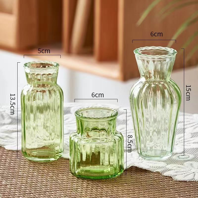 [3 피스 세트] 인 스타일 미니 유리 꽃병 수경 녹색 식물 장식 데스크탑 투명 꽃꽂이 장식품