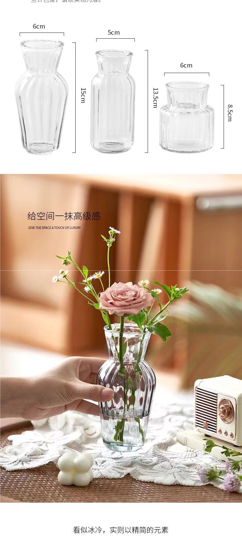 [3 피스 세트] 인 스타일 미니 유리 꽃병 수경 녹색 식물 장식 데스크탑 투명 꽃꽂이 장식품스토어 가기