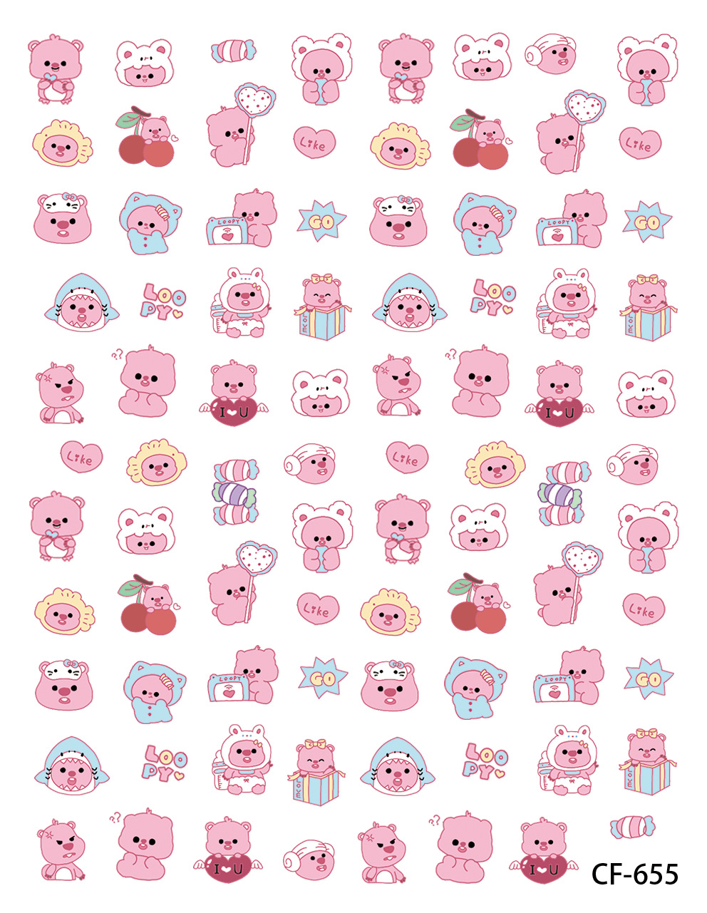 귀여운 만화 접착 네일 데칼 낙서에 새로운 재고 도매 네일 아트 스티커 양각 3 차원 시리즈스토어 가기