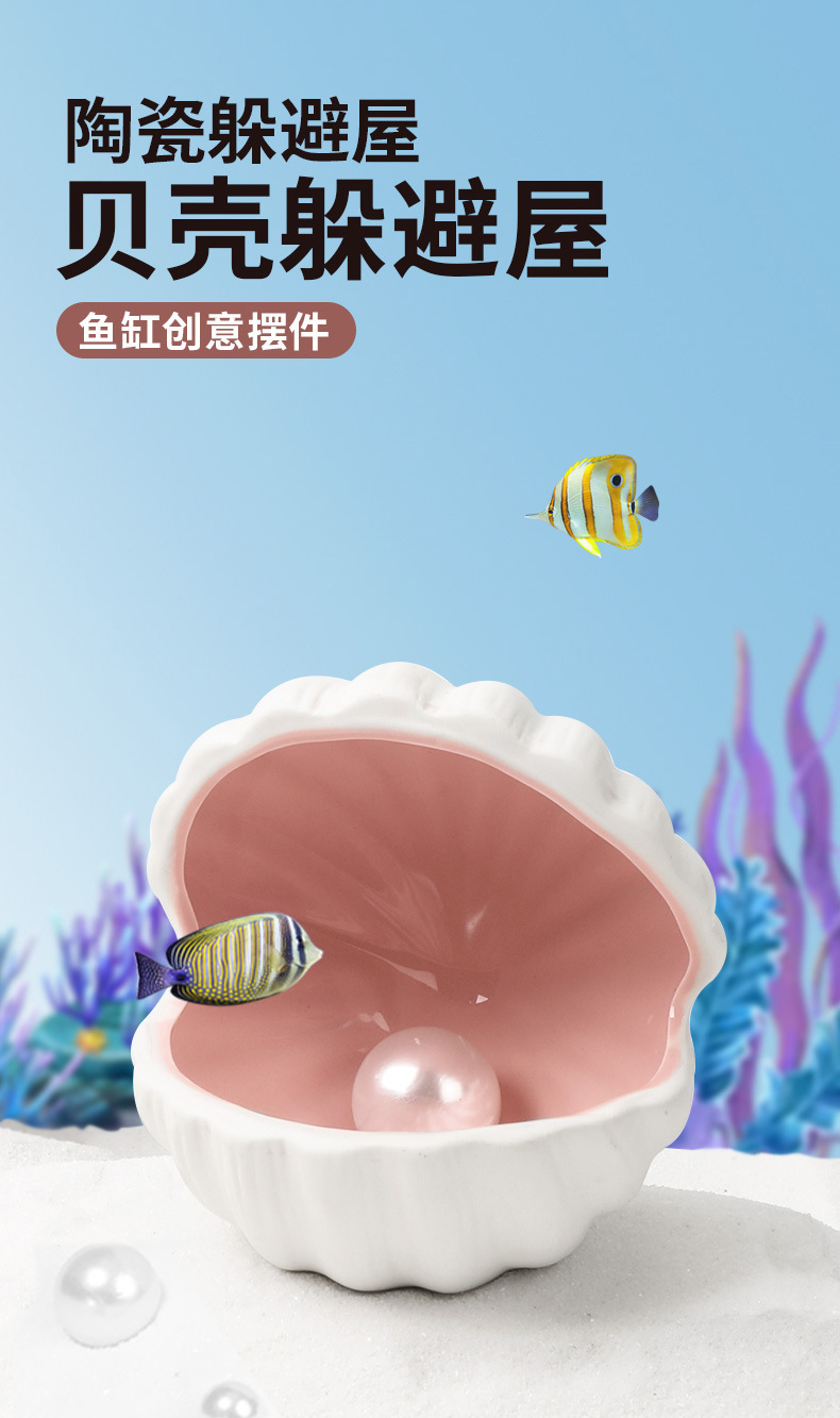 수조용 크로스보더 조개껍데기 세라믹 피쉬하우스, 도자기 항아리, 어항 조경, 어항용 어린 어류 피난처, 물고기 및 새우 번식 둥지스토어 가기