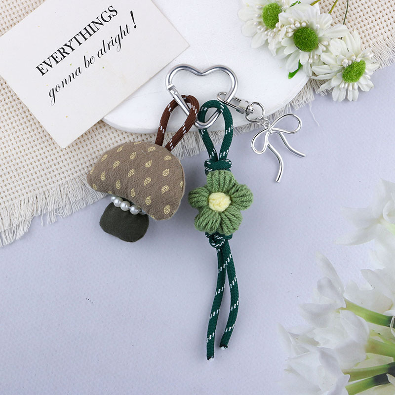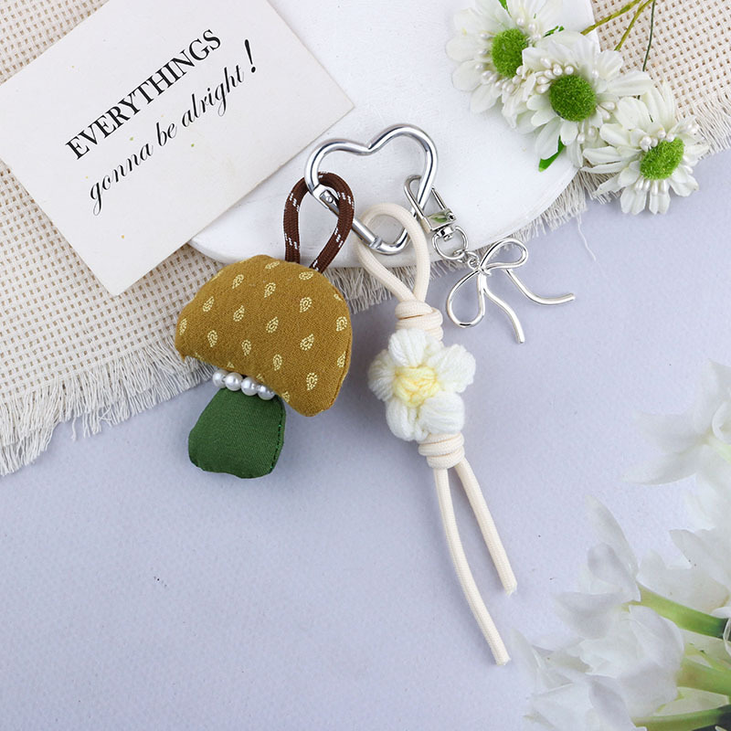새로운 스타일 인터넷 축하 미우 스타일 원단 모리 스타일 버섯 꽃 키 체인 휴대 전화 가방 교수형 액세서리 커플 올 매치 펜던트