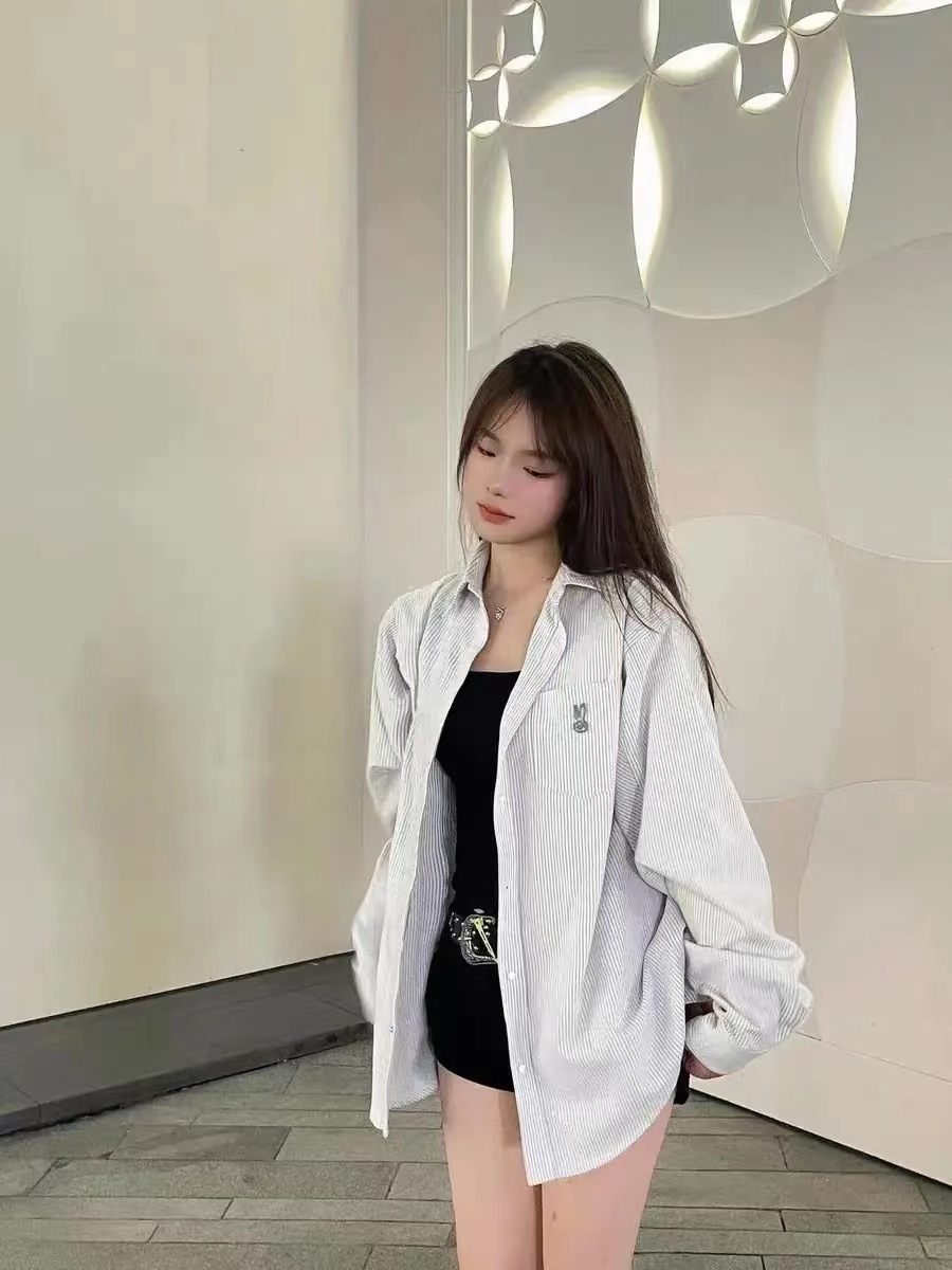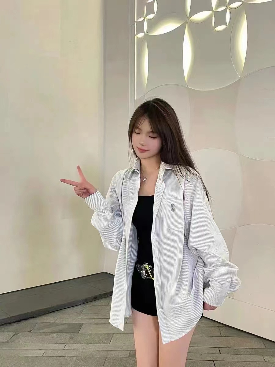 일본 스타일 달콤한 토끼 줄무늬 긴팔 셔츠 여성의 봄과 가을 느슨한 프랑스 디자인 틈새 캐주얼 올 매치 탑스토어 가기