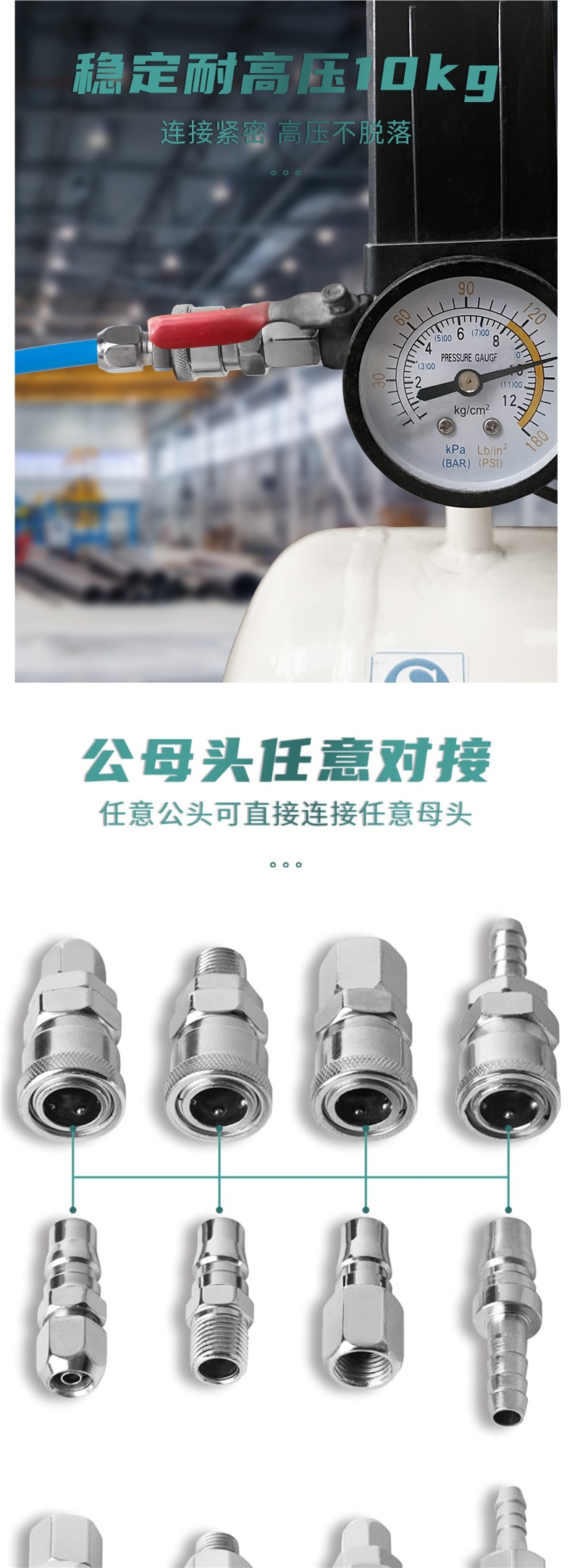 C 형 자체 잠금 스프링 에어 파이프 빠른 커넥터 공압 도구 공기 압축기 PU 호스 에어 펌프 액세서리 퀵 플러그