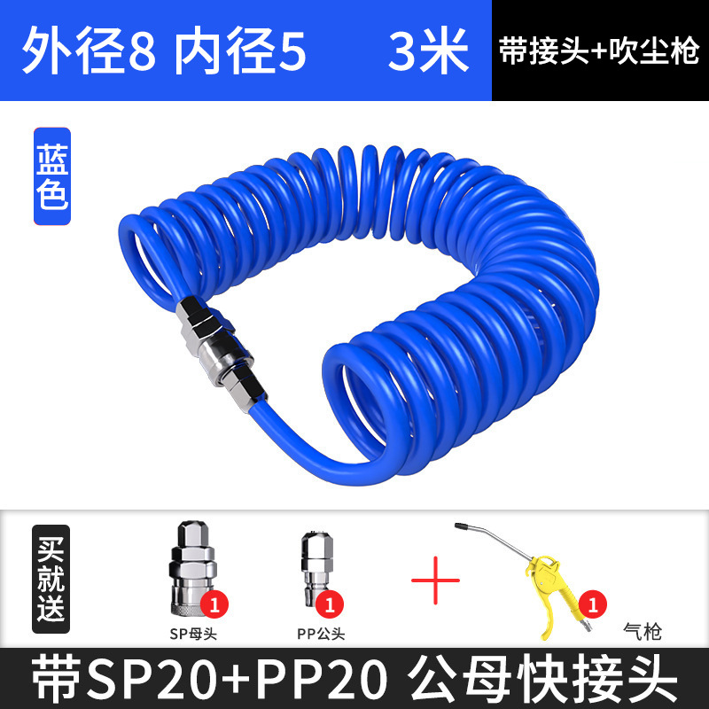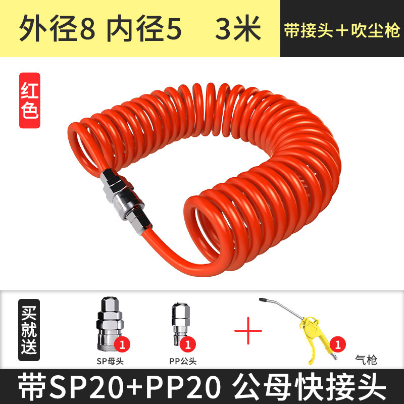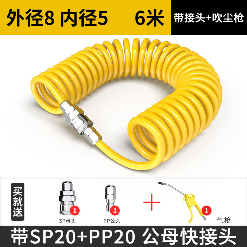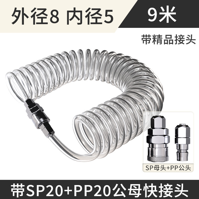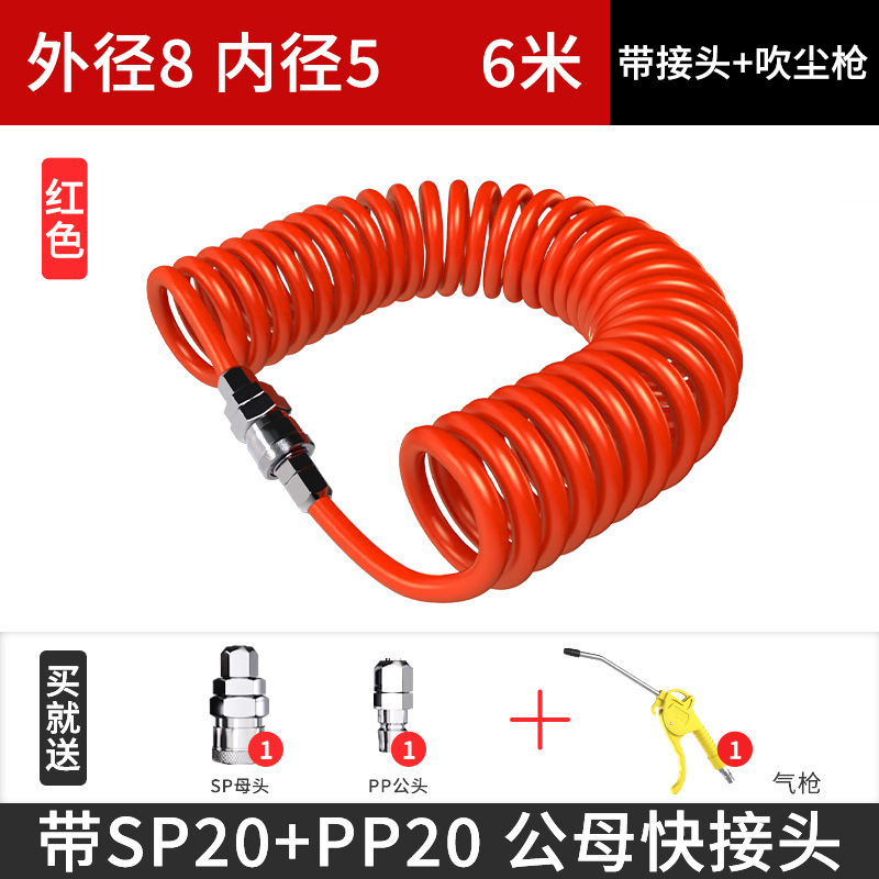PU 스프링 에어 파이프 호스 에어 펌프 나선형 텔레스코픽 파이프 공기 압축기 공압 고압 공기 파이프 커넥터 8mm6 10스토어 가기