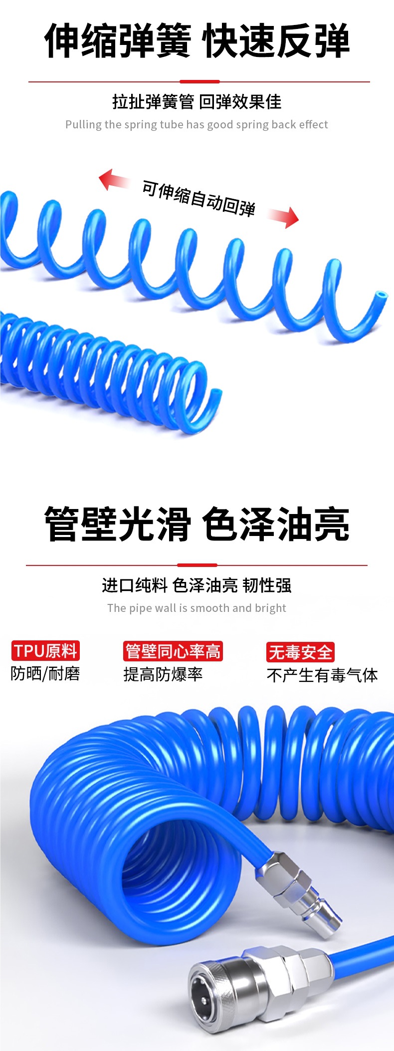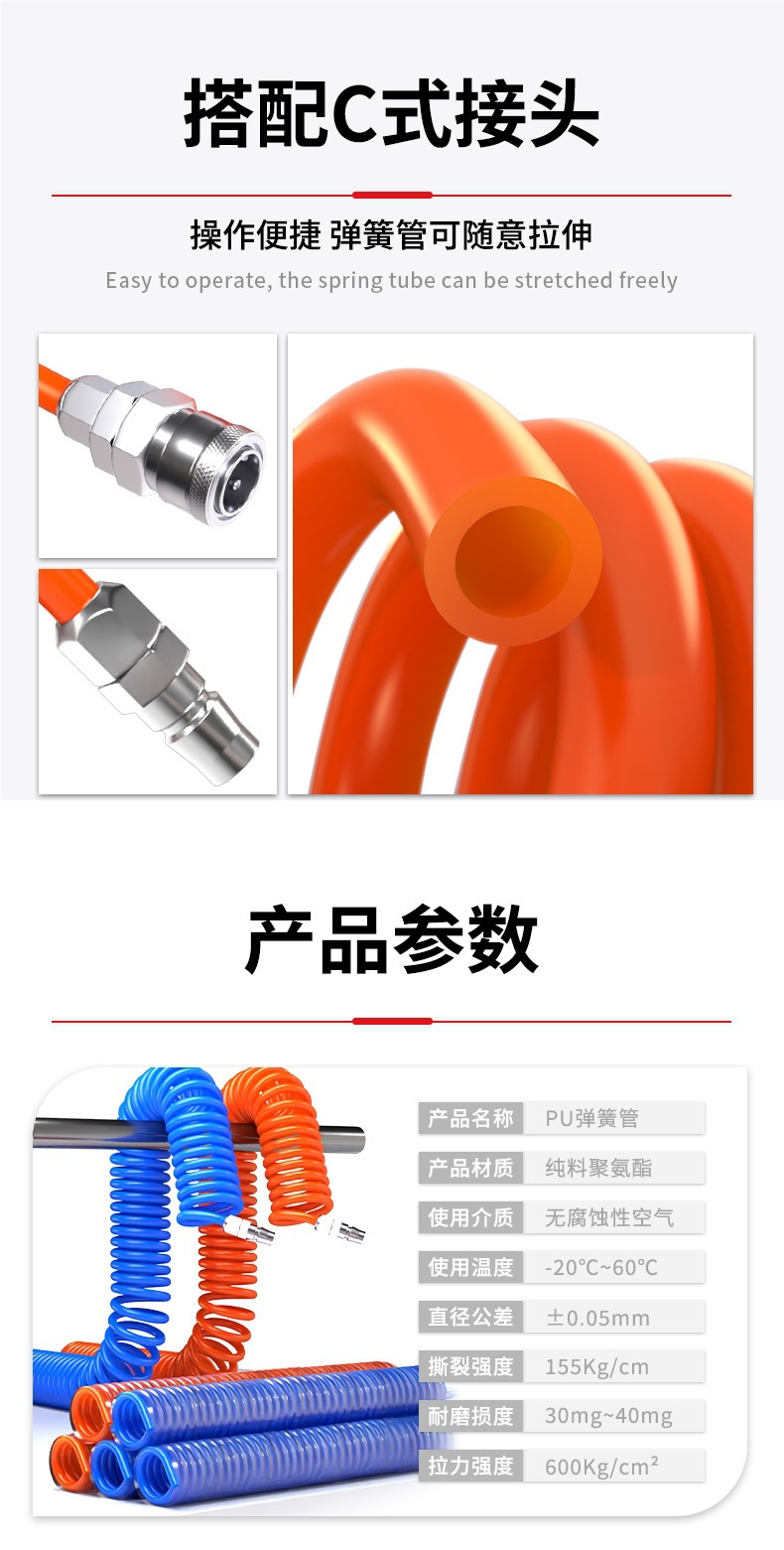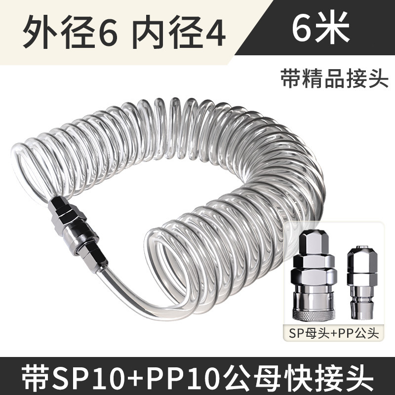 PU 스프링 에어 파이프 호스 에어 펌프 나선형 텔레스코픽 파이프 공기 압축기 공압 고압 공기 파이프 커넥터 8mm6 10